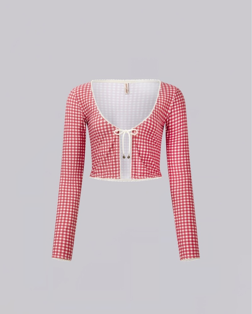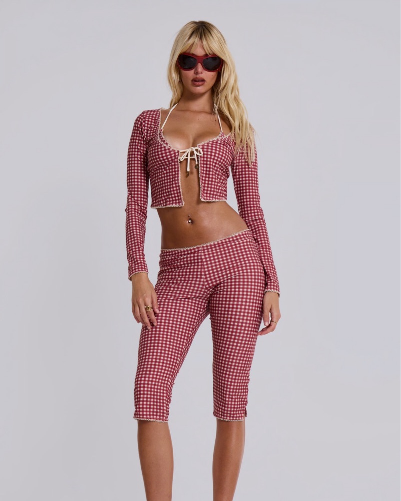 Freda Gingham Swim Cardigan Top by Jaded London - Pickle