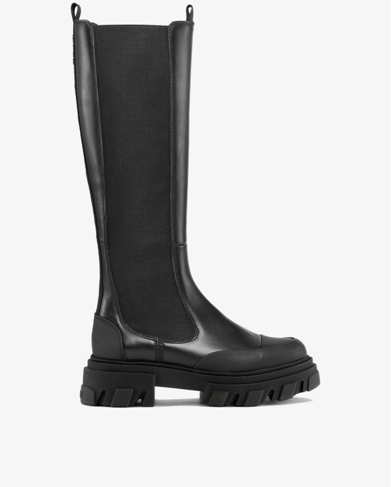 These boots feature elastic panels, toe cap details, pull tabs, chunky cleated soles and a subtle GANNI logo.