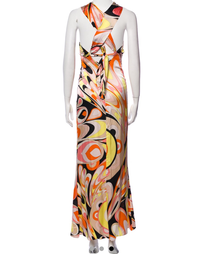 Halter silk long pucci dress with cross body back - you can tie the back in different ways. Dry cleaning included in price