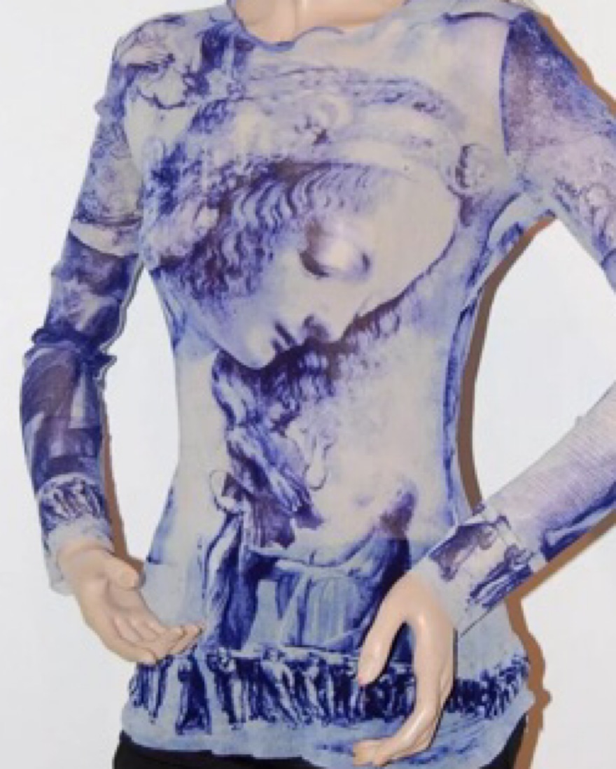 Vintage 90s/Y2K mesh Jean Paul Gaultier long sleeve top with iconic Madonna print