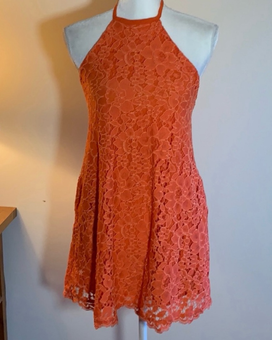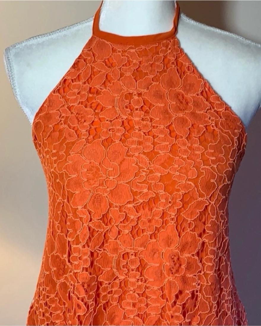 NBD Orange Lace Floral Halter Dress by NBD - Pickle