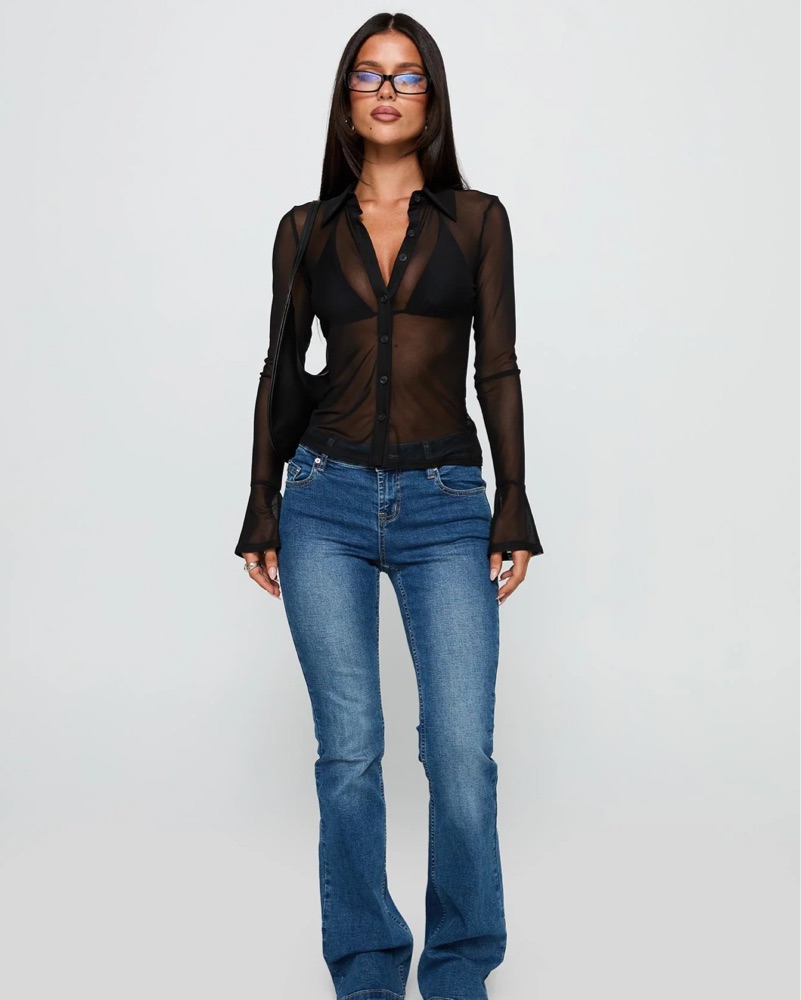 Two Of Us Sheer Long Sleeve Top Black