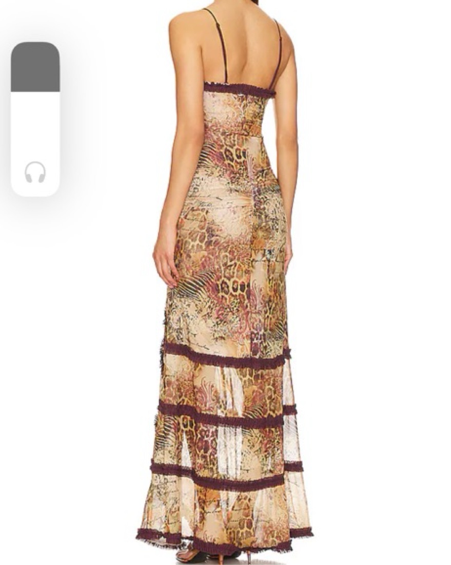 This striking leopard print maxi dress from Jaded London exudes effortless glamour. The open neckline and thigh-high slit add a sultry touch, making it the perfect choice for a night out on the town.