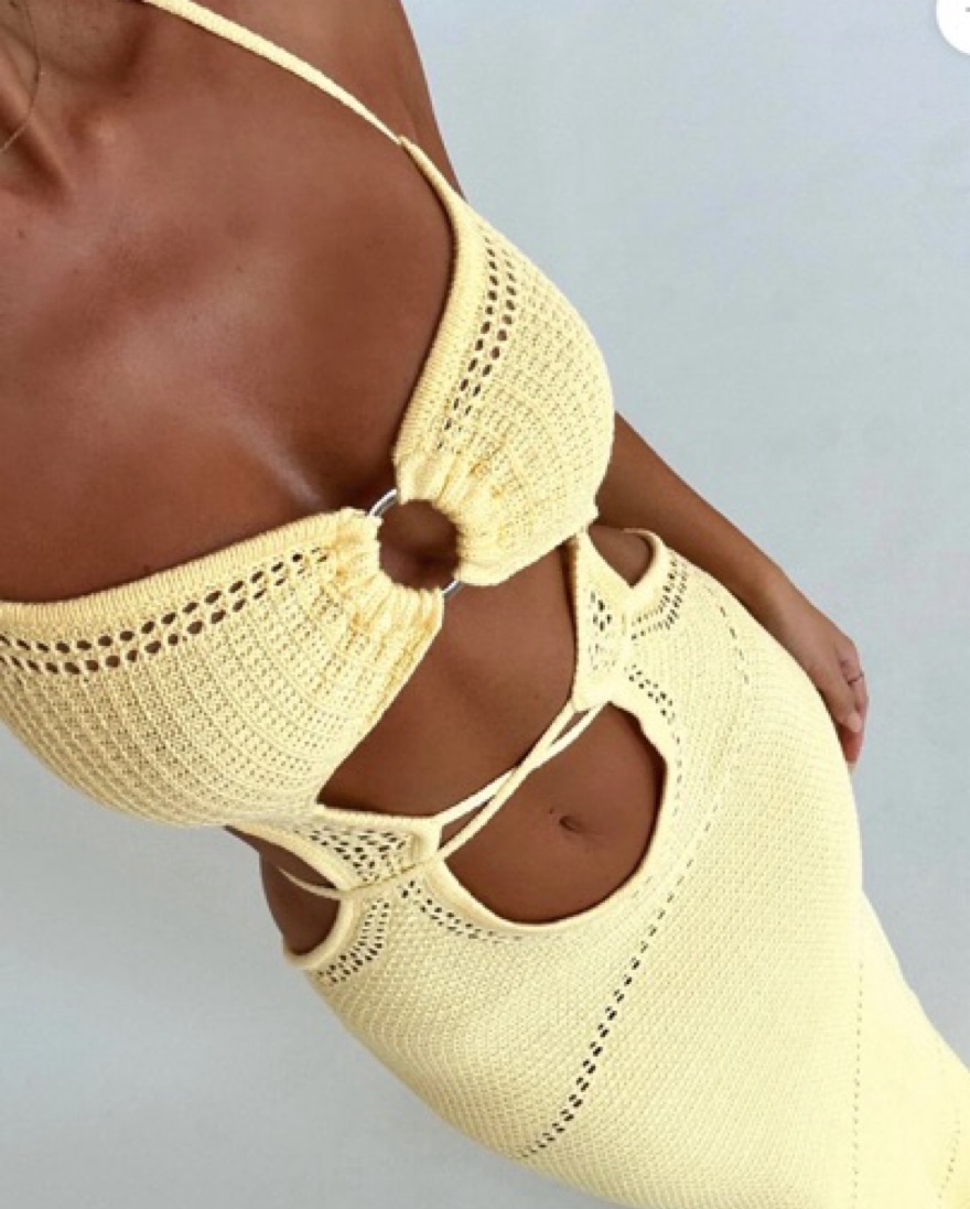 This breathtaking design was crafted from a luxurious crochet fabrication that is not only flattering to the figure but comfortable. Quanah features a cross-over bodice, sleek cut outs and a halter neckline. The open back with tie-up feature adds a sense of sophistication and elegance. This maxi is