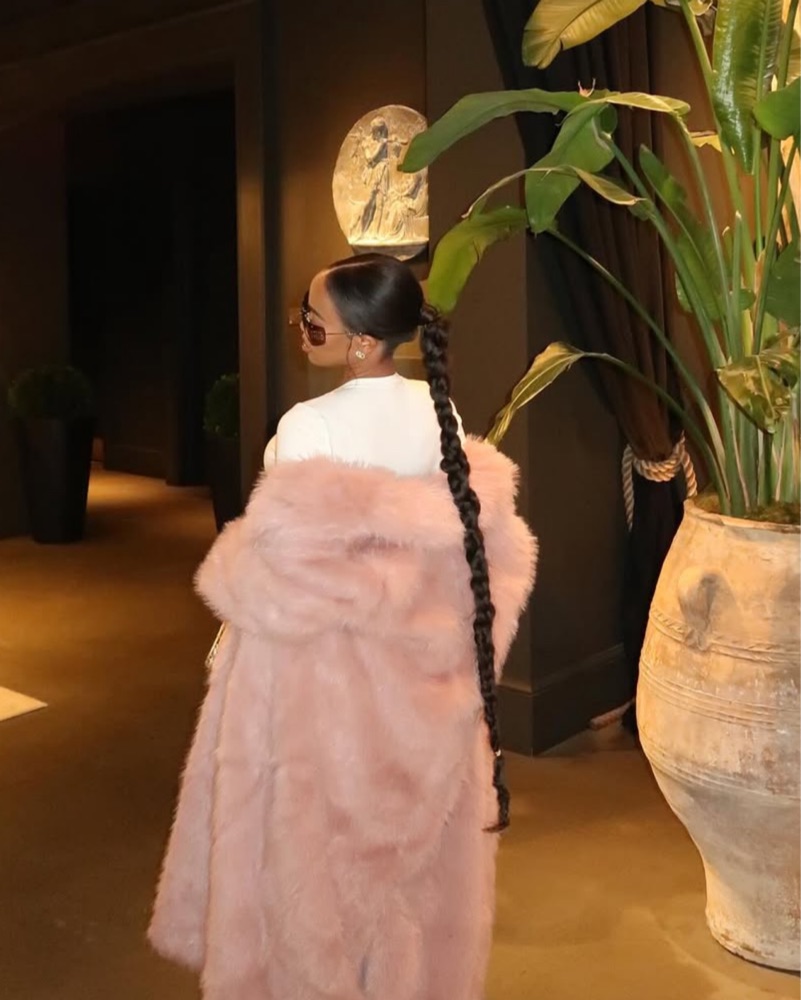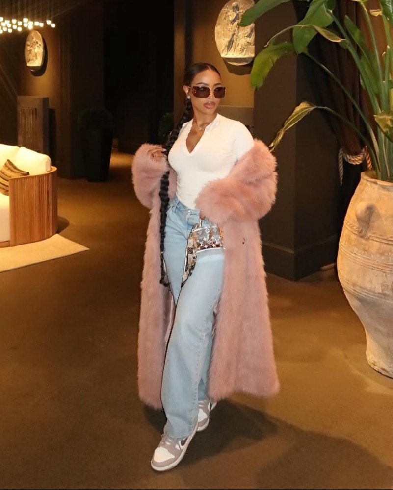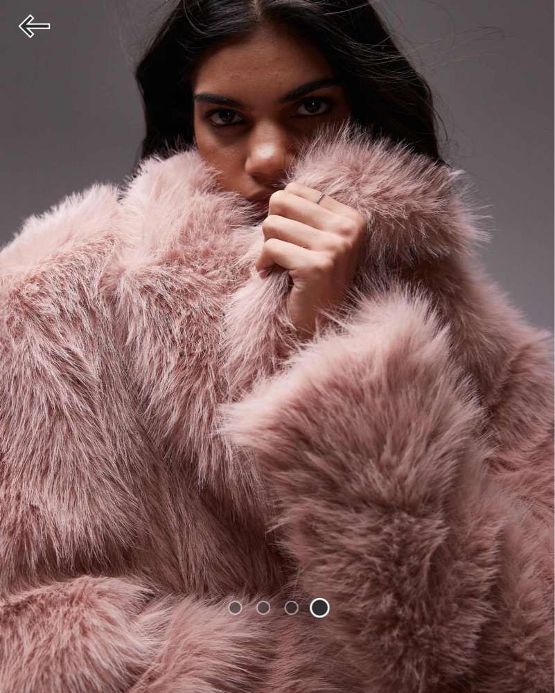 Fancy pretty Topshop faux fur long coat in pink. It’s a size small but made as oversized to fit a medium too.k
