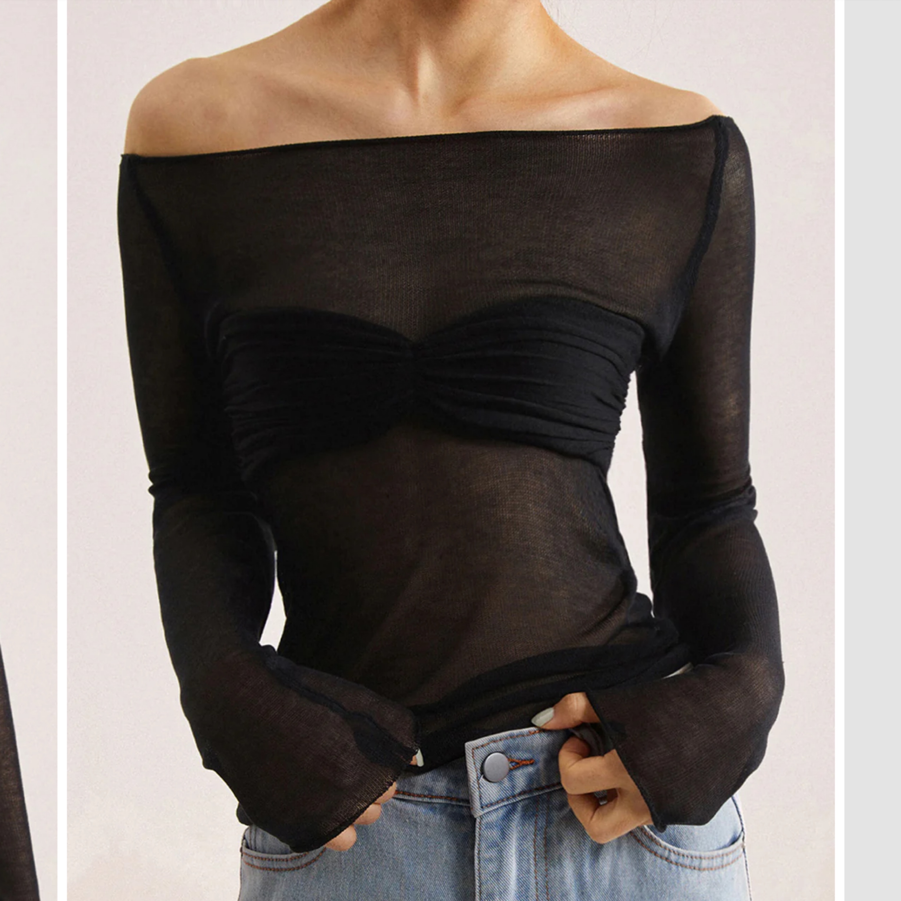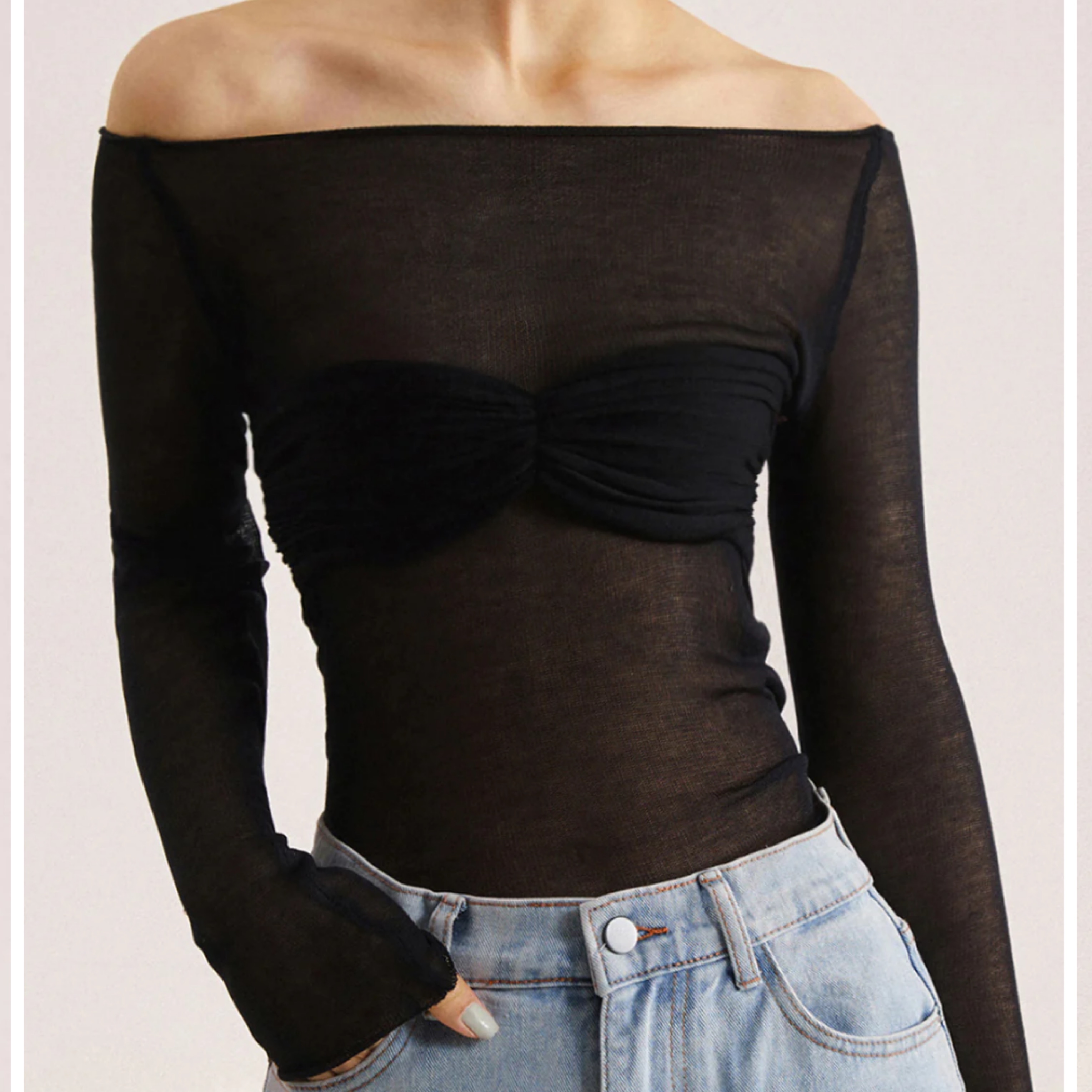 Off-Shoulder Mesh Long Sleeve Shirt