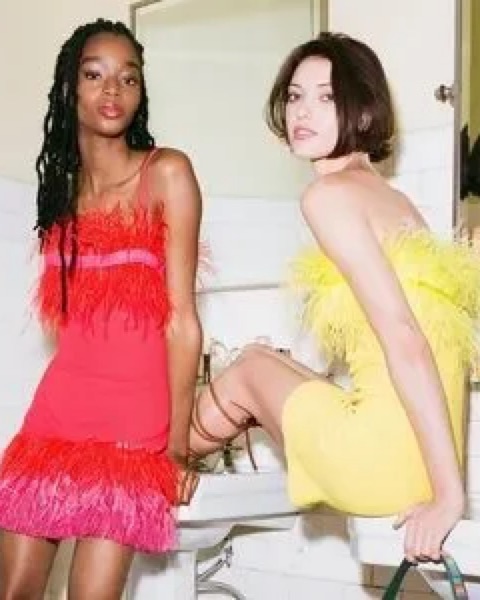 Such a flirty little dress, with red and pink feathers and ribbon detailing! So cute for special occasions and makes ur legs look a mile long. Fits a size small xx