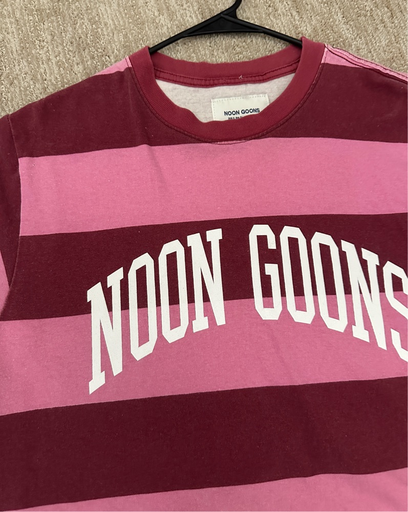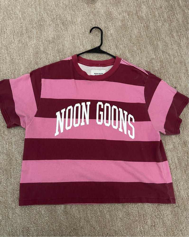 Noon goons maroon and pink striped graphic tee boxy t shirt burgundy