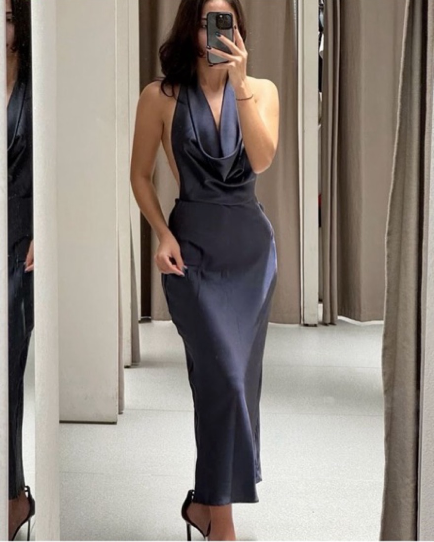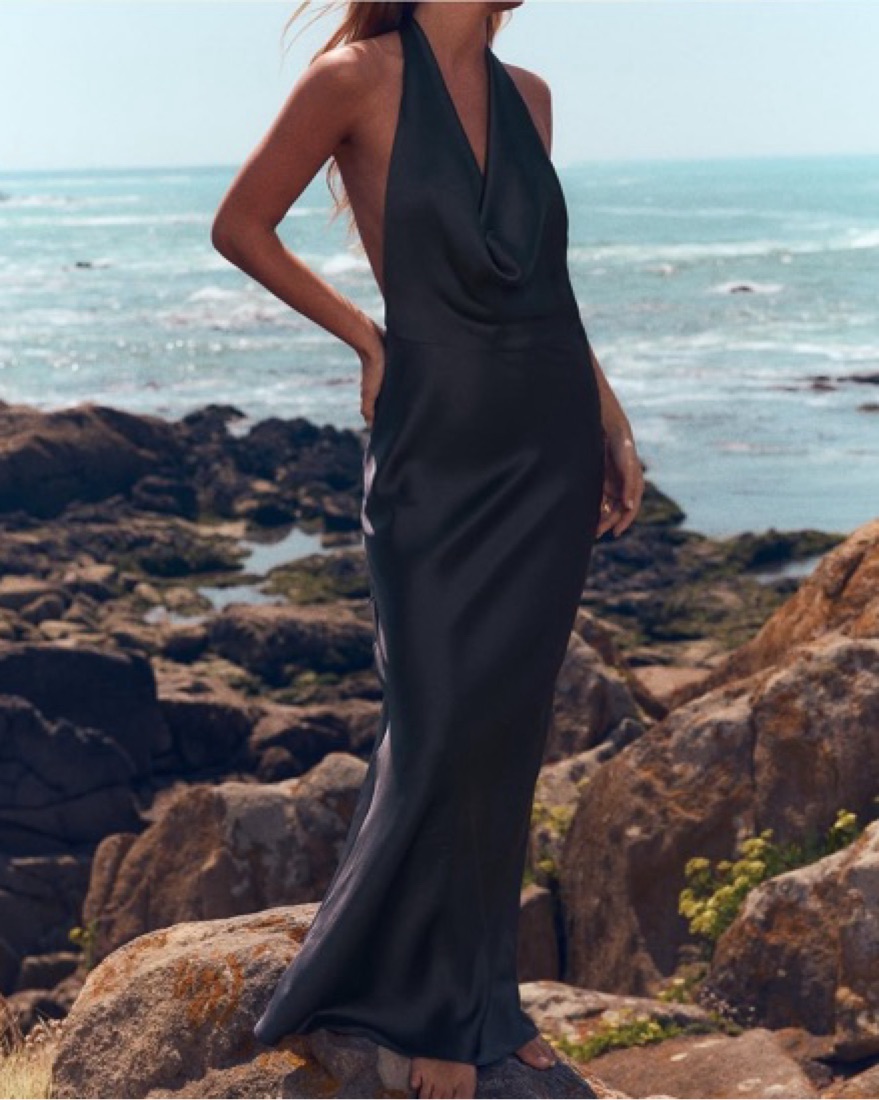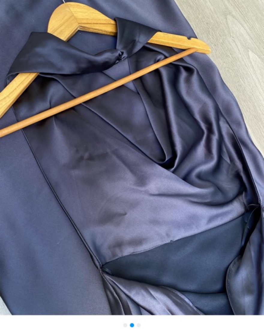 This elegant satin gown features a stunning cowl neckline and figure-flattering silhouette, perfect for an enchanting evening event, wedding or date night!
