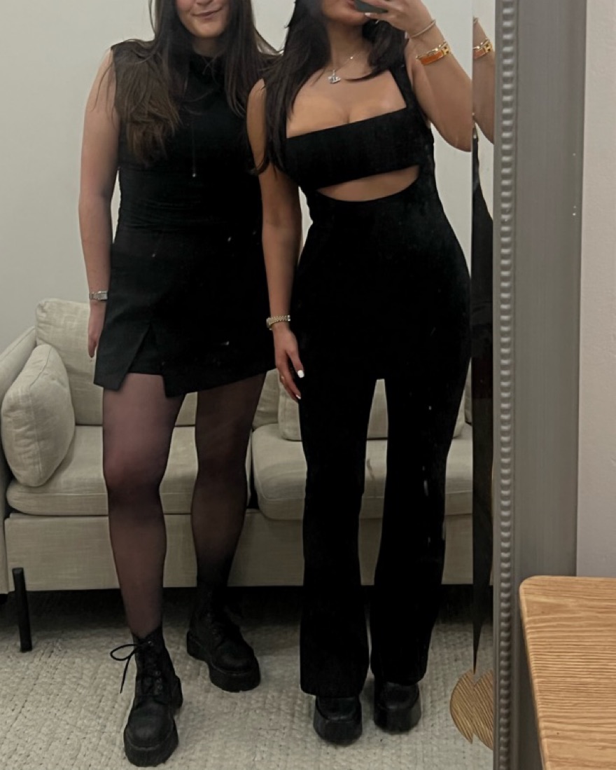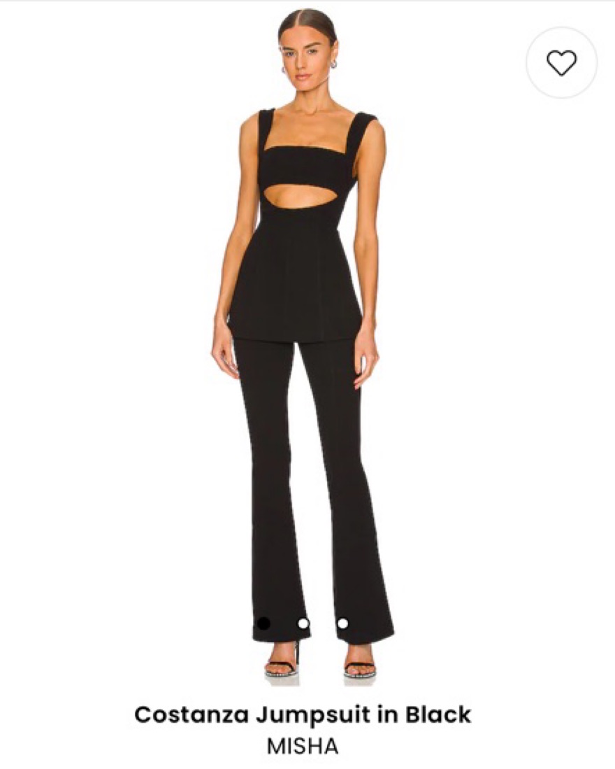 Costanza Jumpsuit in Black by MISHA from Revolve. Such a versatile piece. I’ve worn it to birthdays, nights out, dinners, engagement parties, etc. Will fit anyone length wise from 5’2-5’7