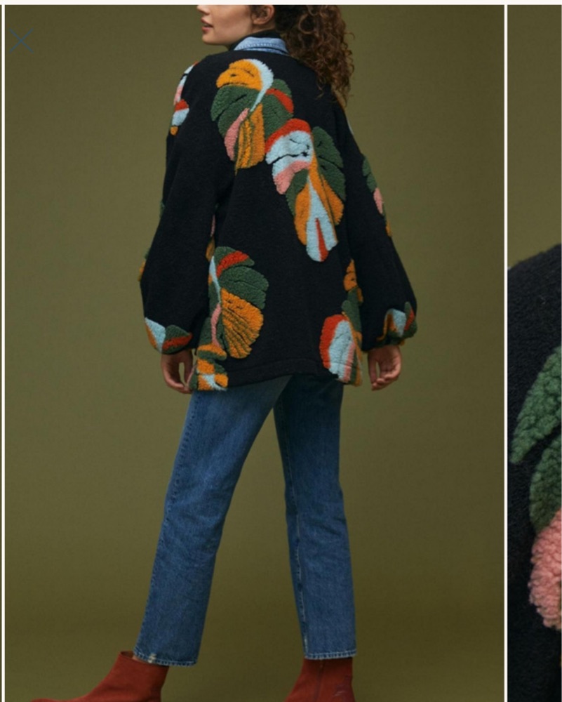Bright botanical printed Sherpa jacket
