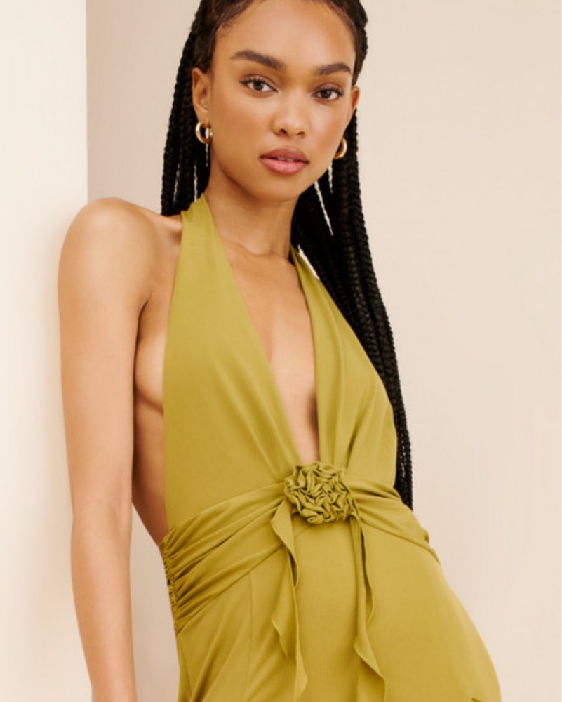 Halter ruffle Maxi Dress by WeWoreWhat - Pickle