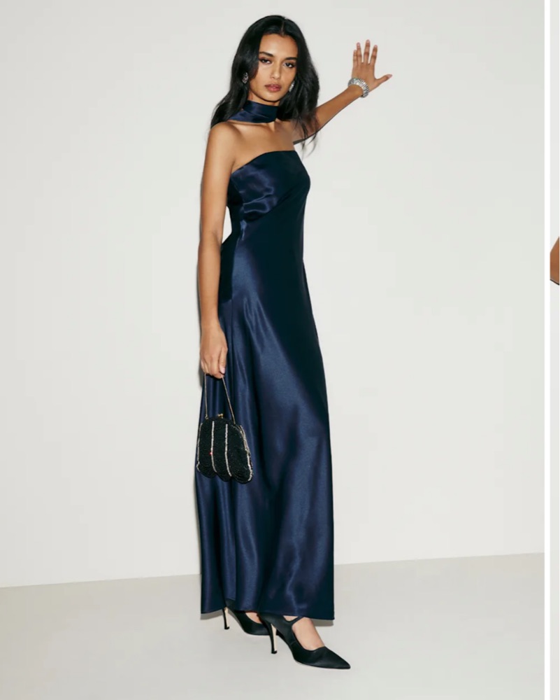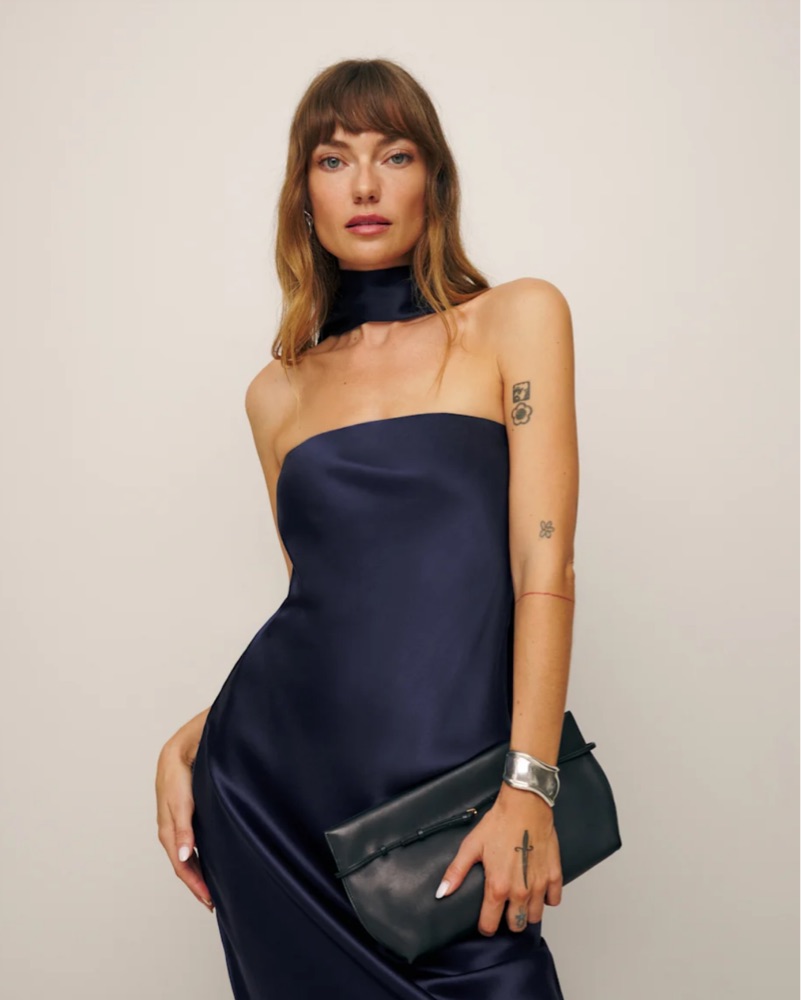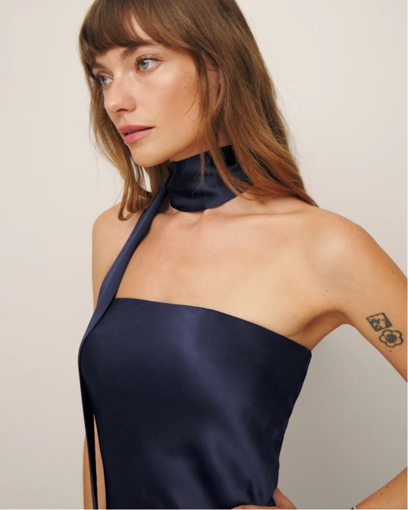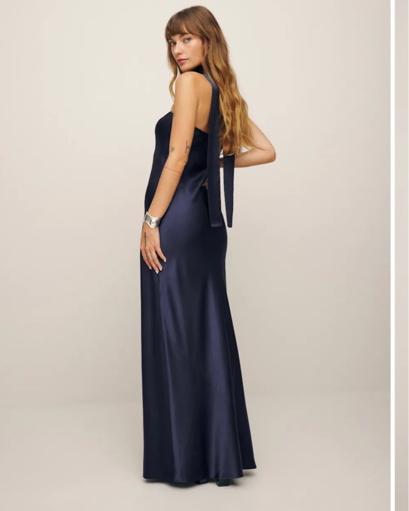 Reformation Navy Blue Strapless Gown