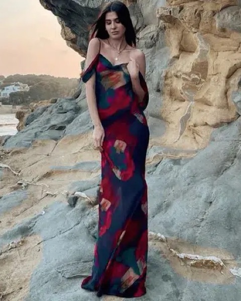 Didnt end up wearing it because it was too see through for the wedding i attended, but its SO SO CUTE and fits so well! Longer train, perfect for summer / beach or with a nude/black slip underneath!