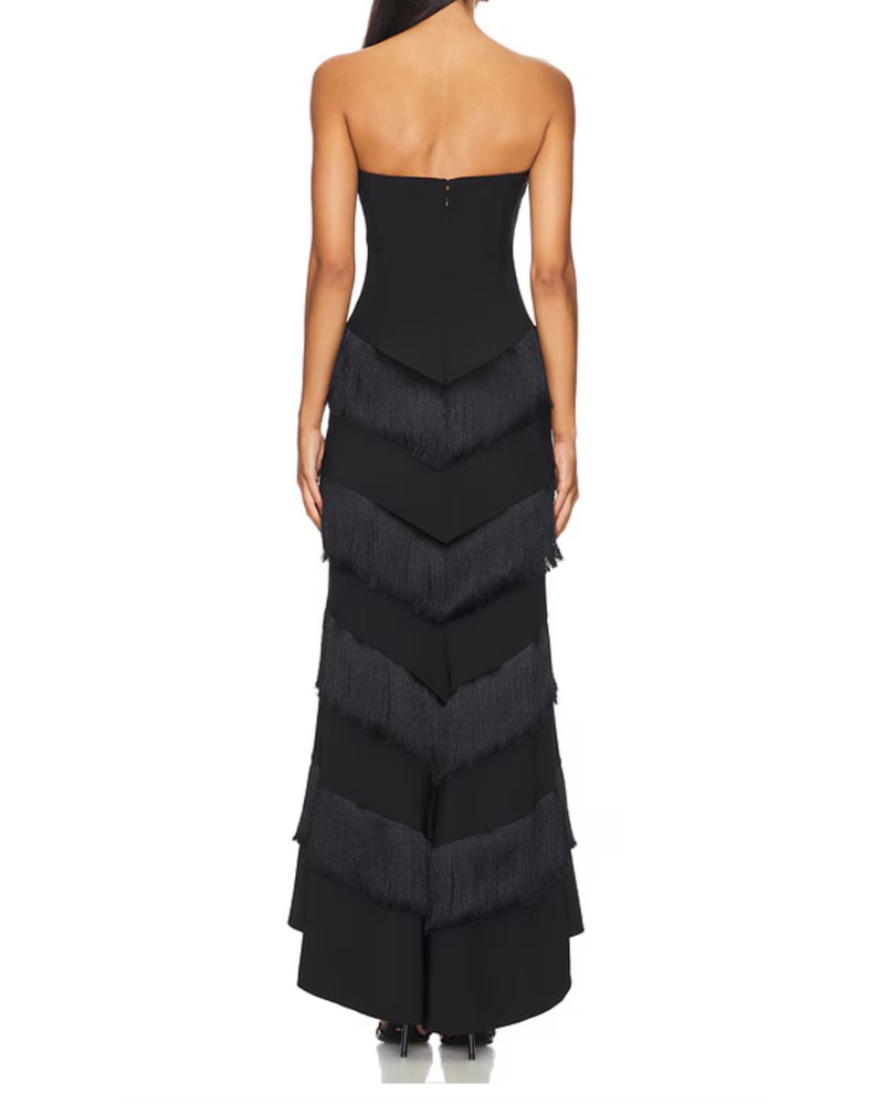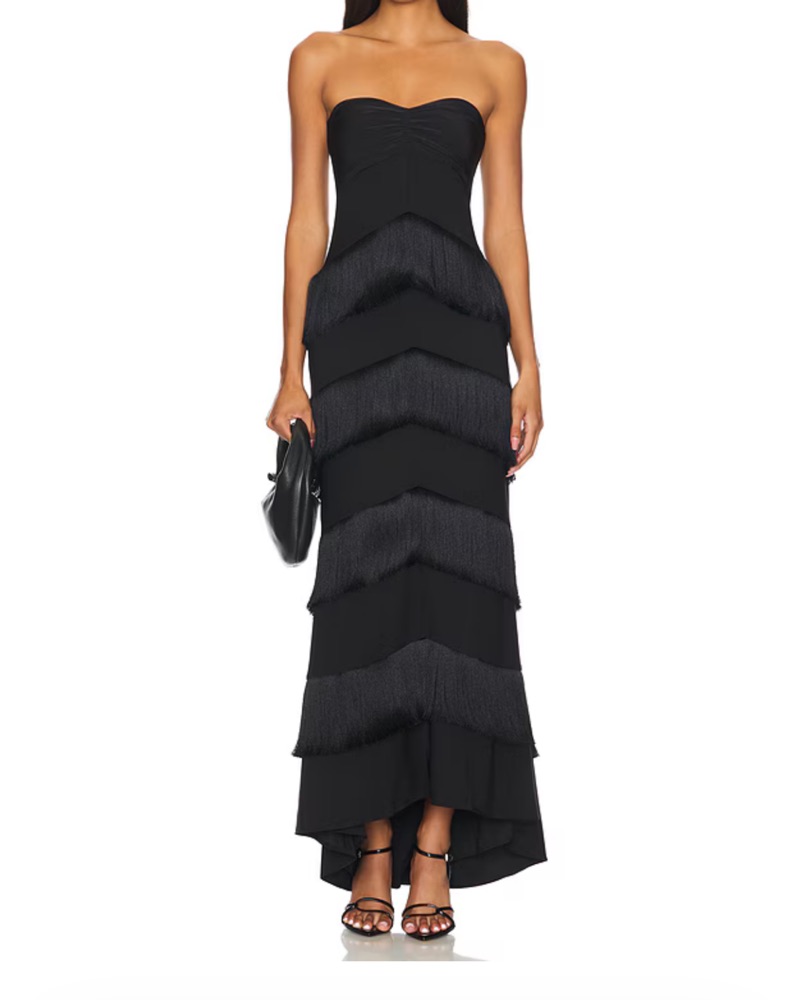 Hera Fringe Maxi Dress in Black by House of Harlow 1960 - Pickle