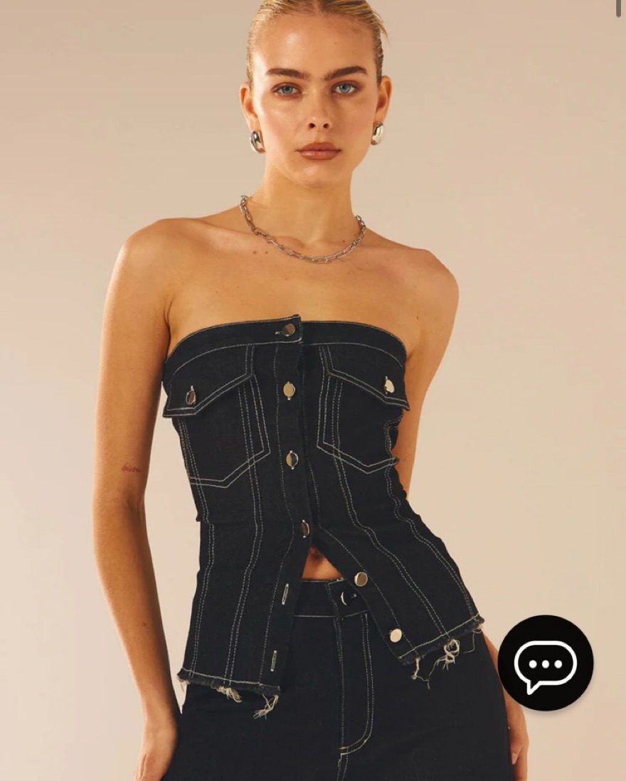 Super cute dark wash jean top - says Indigo but it’s borderline black. Also selling the matching jeans!