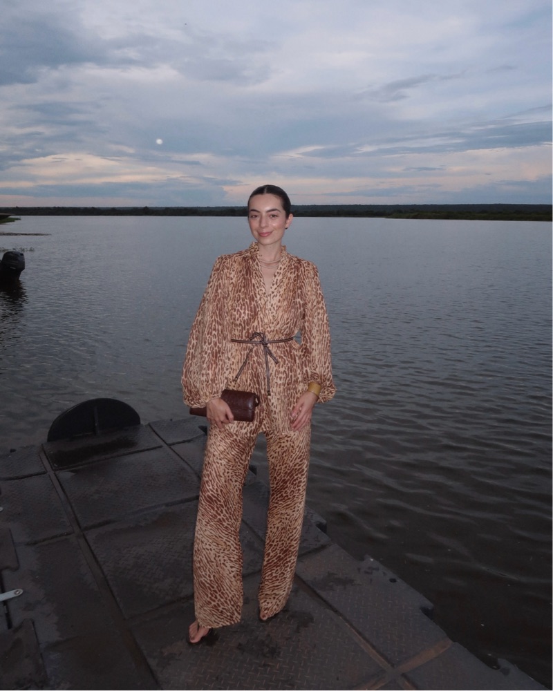 Renting my two piece set in leopard from Zimmermann perfect Safari outfit pants and a long sleeve top keeps your body covered at night