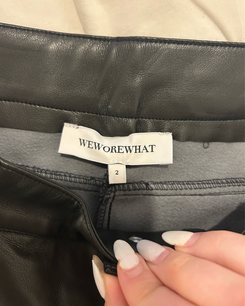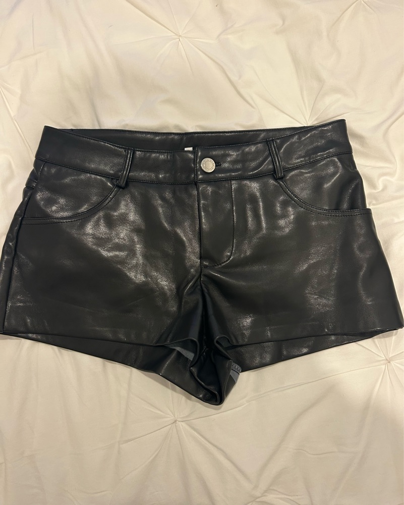 The perfect leather micro shorts from weworewhat! The perfect midrise. I am a 26 waist and the 2 fits perfectly. Only worn once so in amazing condition.