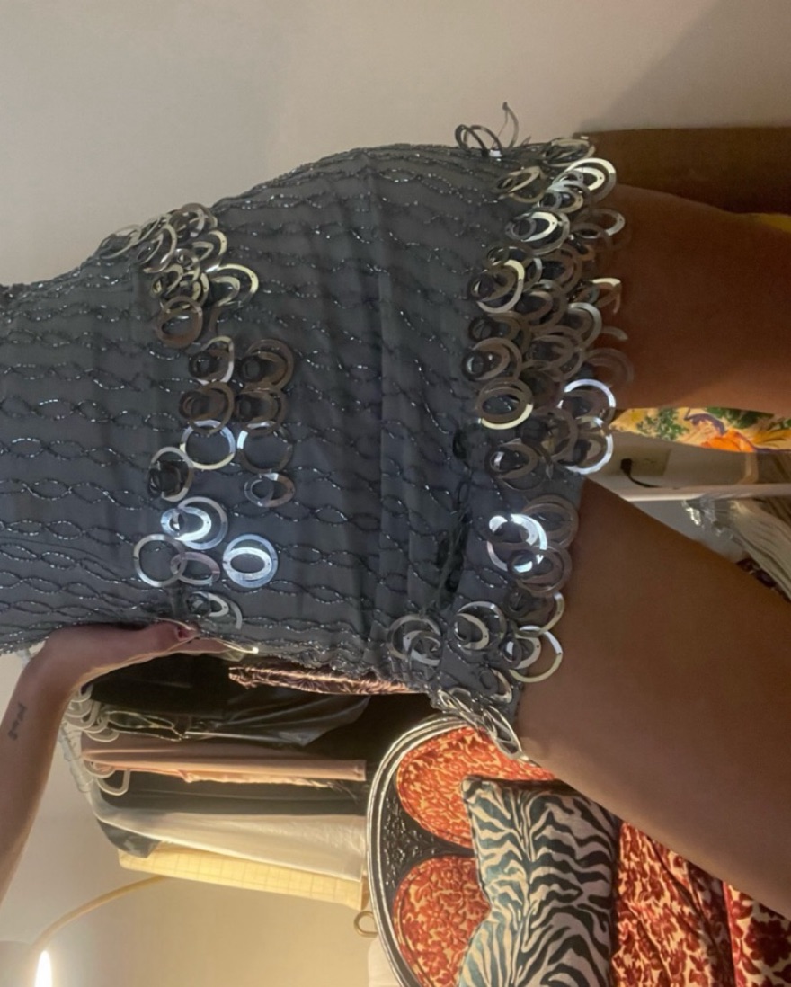 A beautiful vintage piece. Silver and sequined with a gorgeous low back. One of my favs of all time!!!! So flattering and you willllll have your Pamela Anderson moment 🖤 I get so many compliments whenever I wear this! *this is a mini dress!* Measurements are on the last slide!