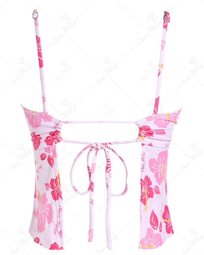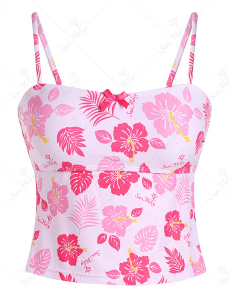 Super cute and summery tankini top featuring a vibrant pink hibiscus print—perfect for beach days or poolside lounging!
