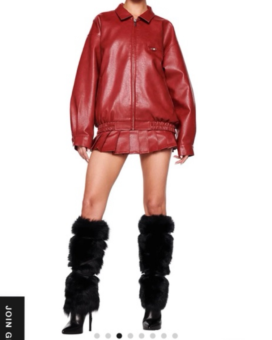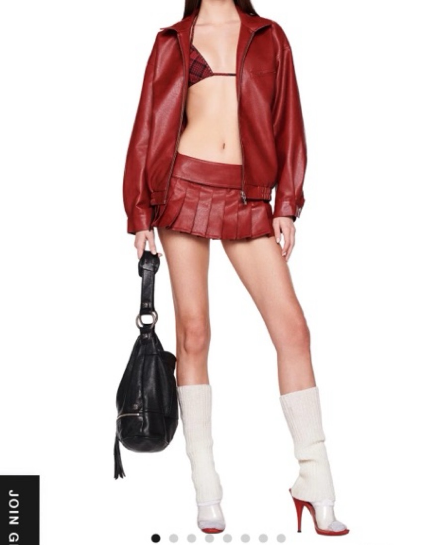 Red leather skirt and matching jacket. Size small. *red bra not included