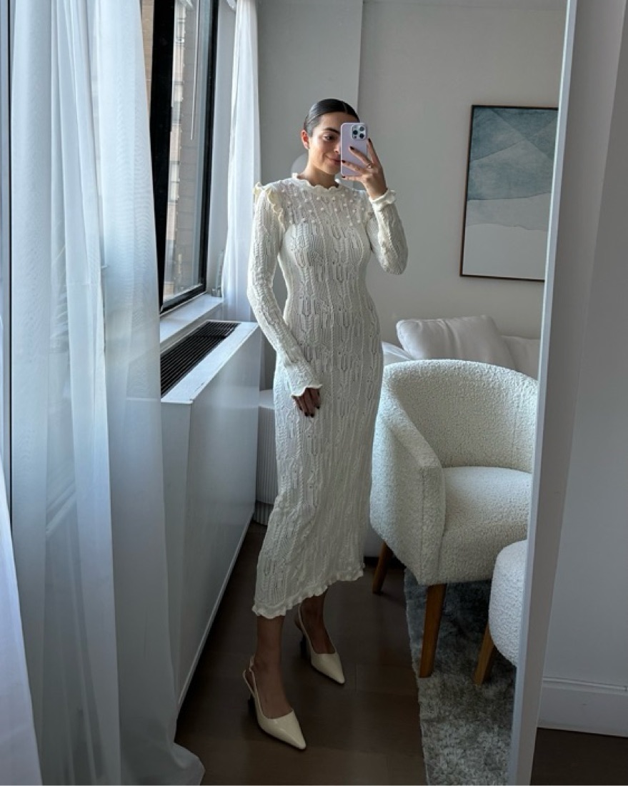 Renting my Ulla Johnson knit dress called the Antoille cable knit long sleeve dress in a size petite, would fit a P / XS comes with a removable slip dress that can be worn under, ivory