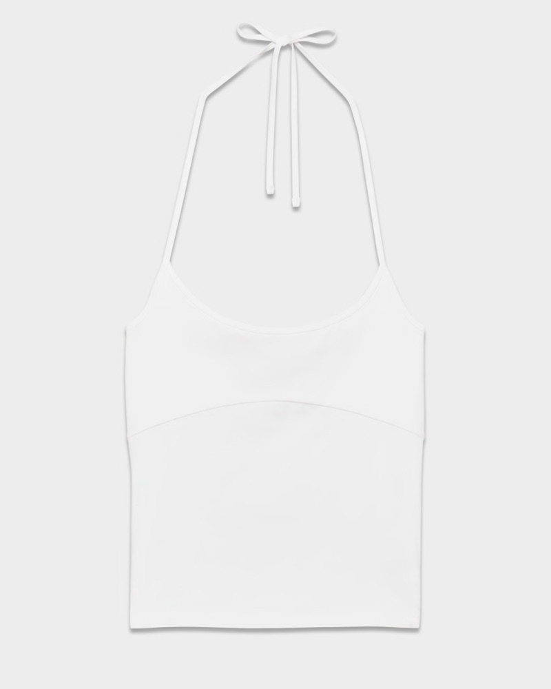 This sleek and stylish white halter bodysuit is perfect for a night or day out. Super flattering design and neutral color. Thicker fabric on the top - not see through.