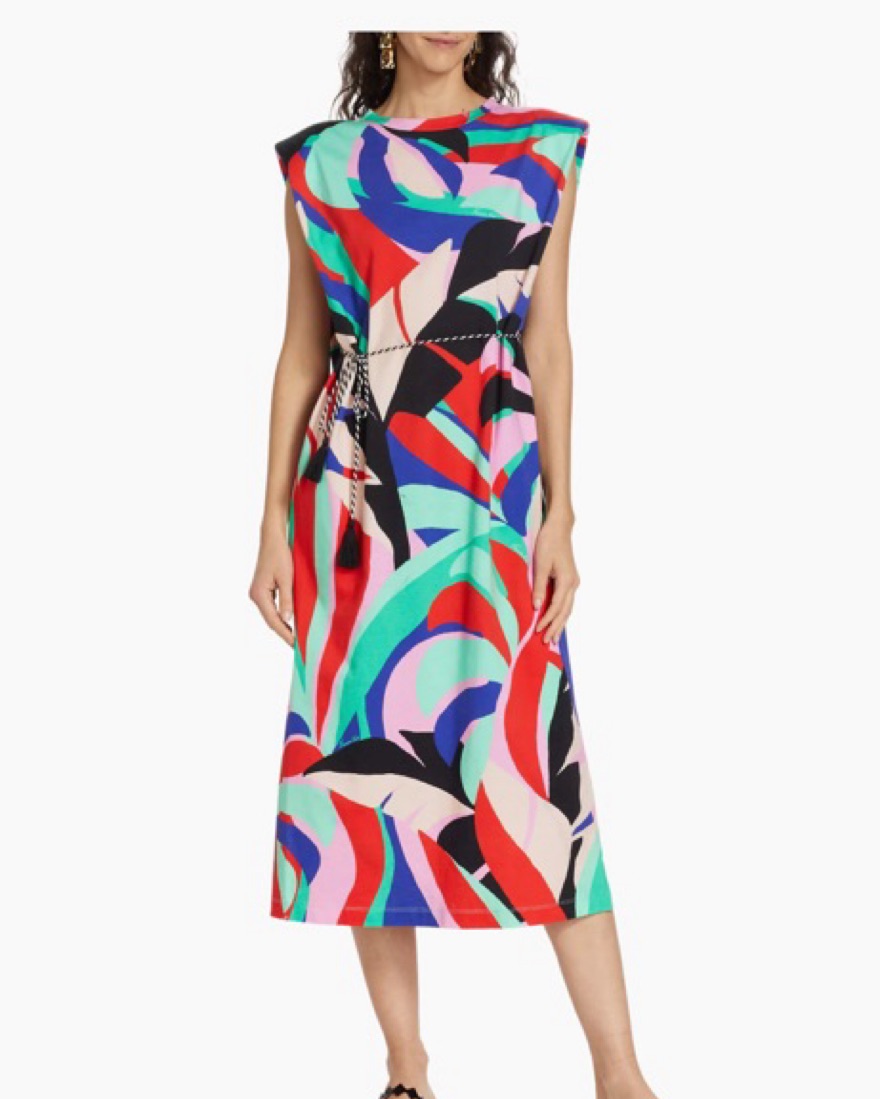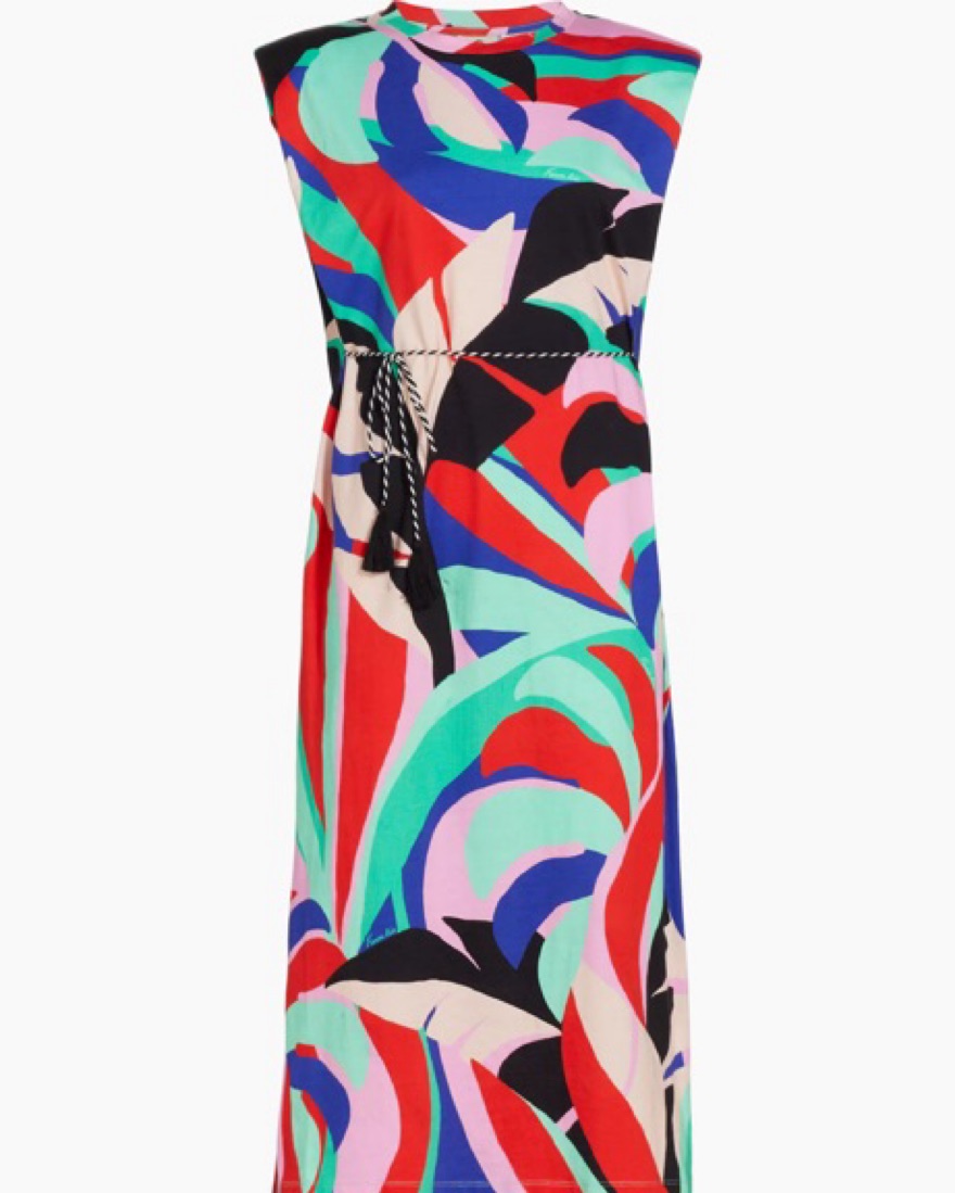 Farm Rio's Monstera T-shirt dress is decorated with a vibrant leafy motif. Tailored with a round neck, this sleeveless style features strong shoulders.