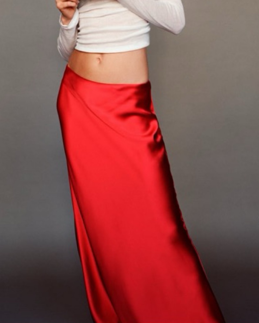 Zara Red Satin Maxi Skirt by Zara - Pickle