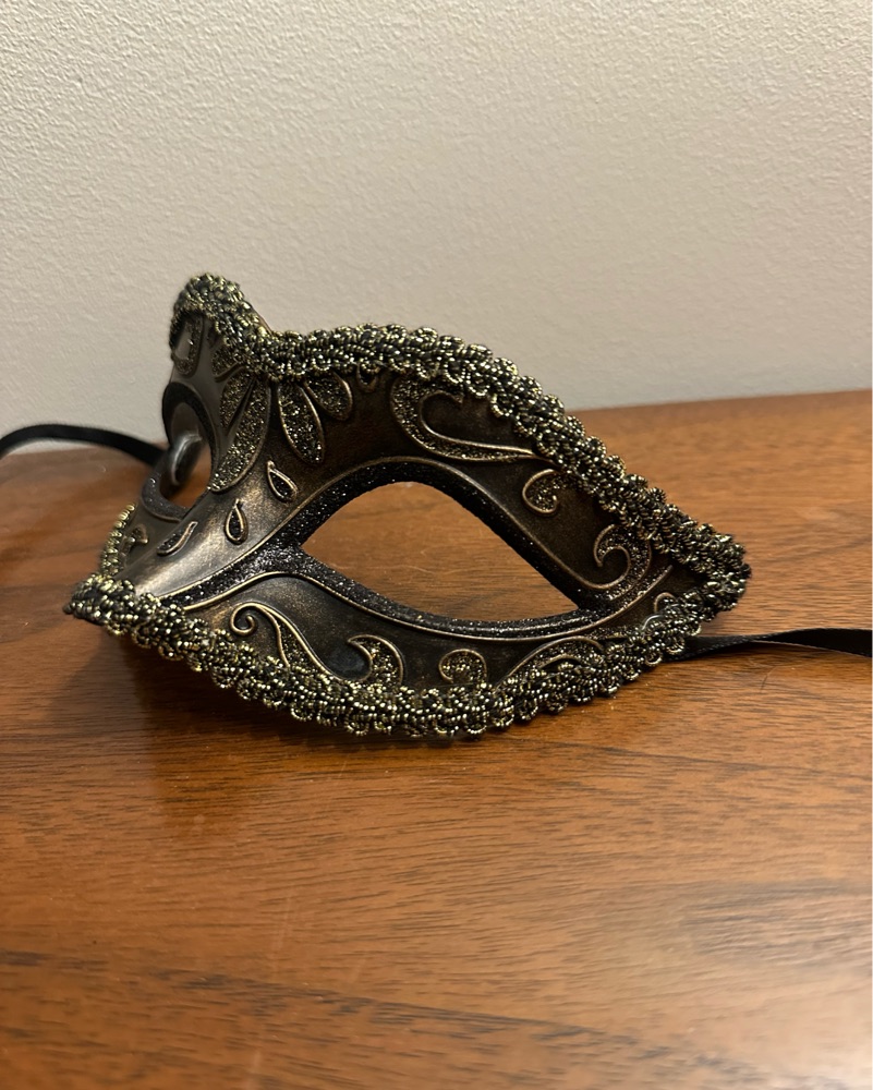 High quality eye mask for masquerade, costume, Halloween parties. Black and gold!