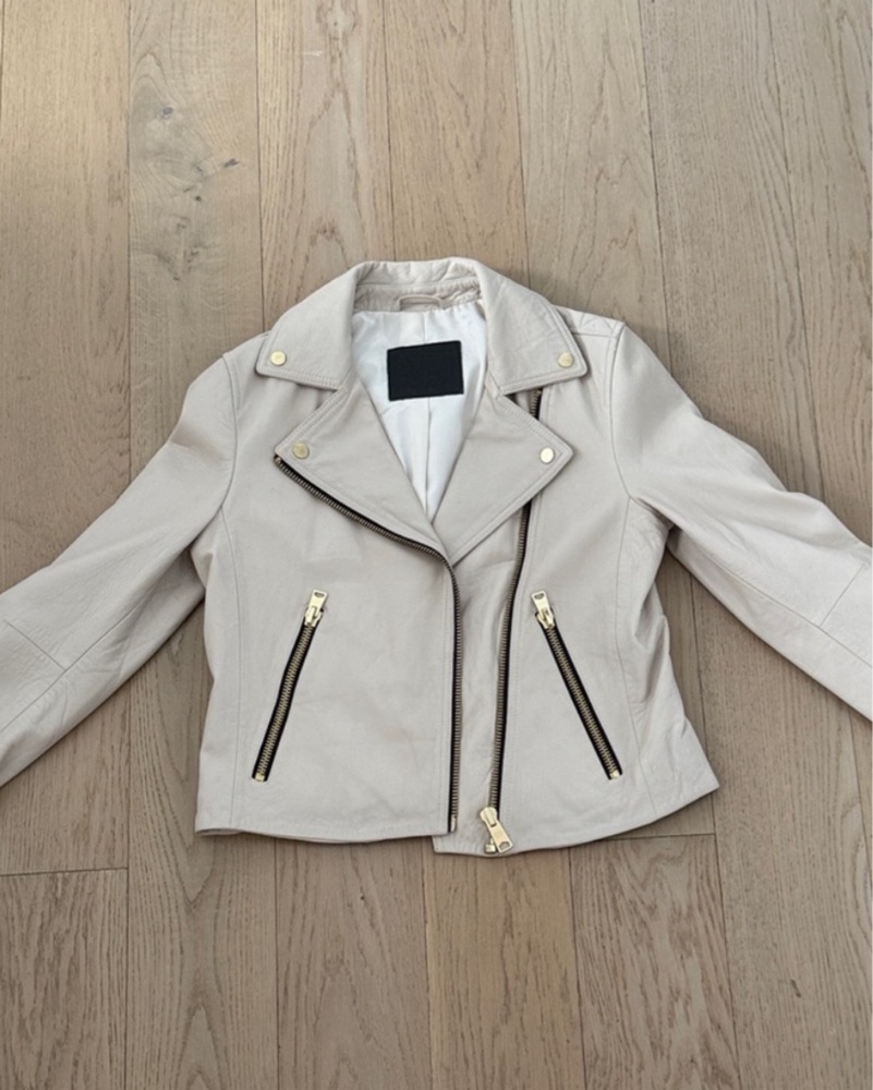 Chic Beige Faux Leather Moto Jacket by All Saints - Pickle