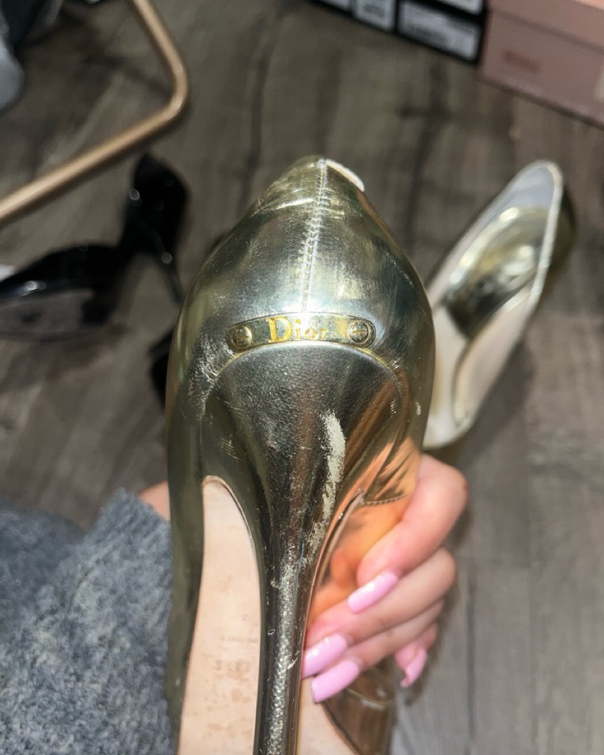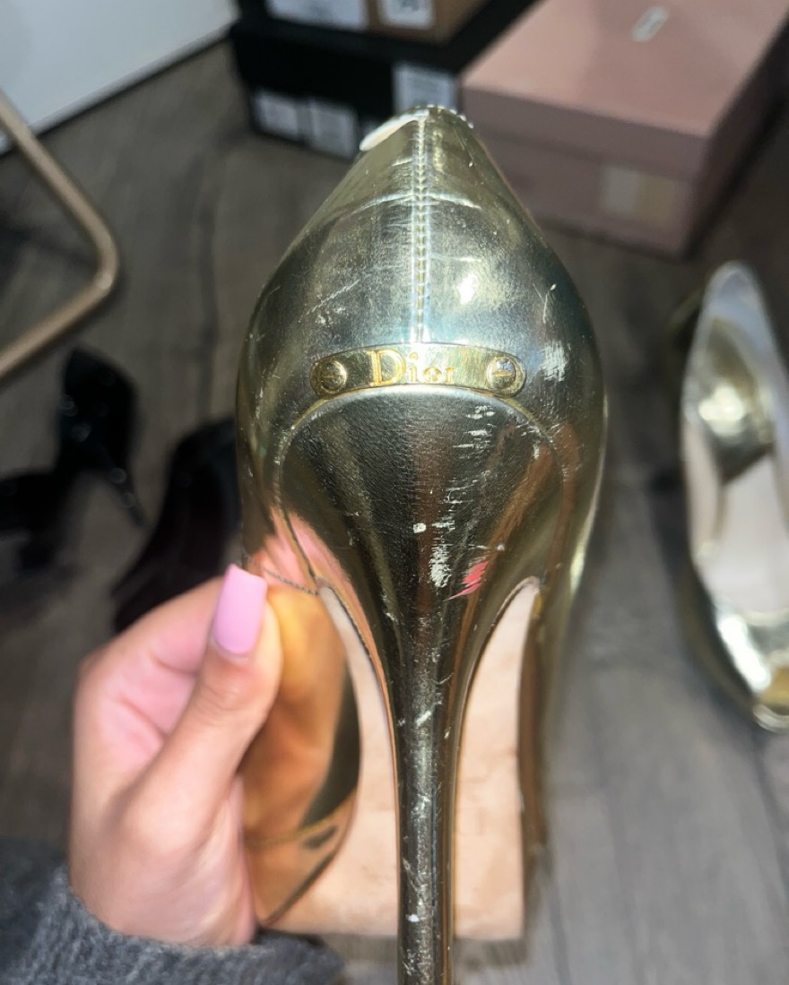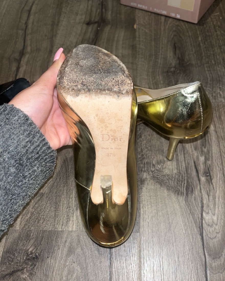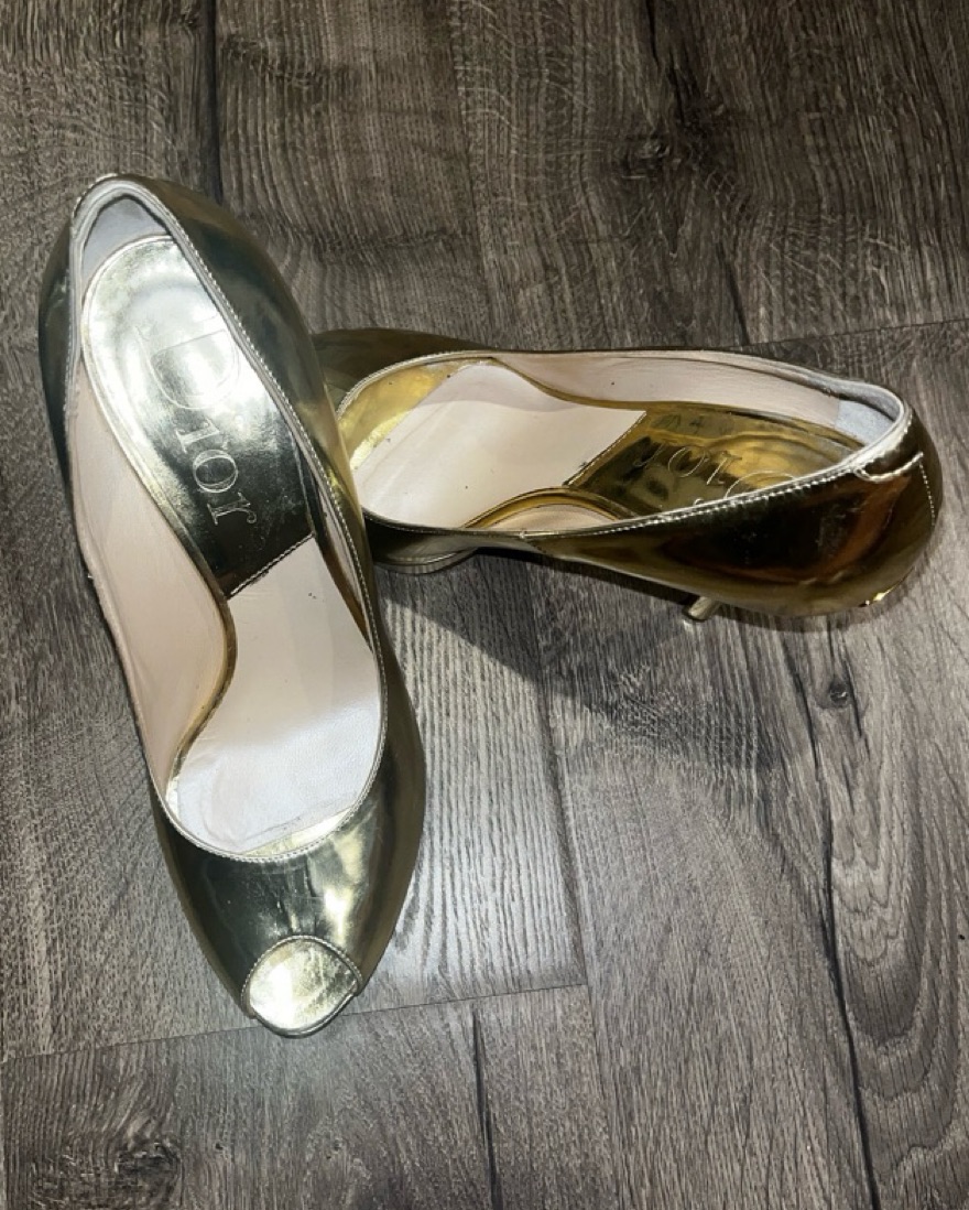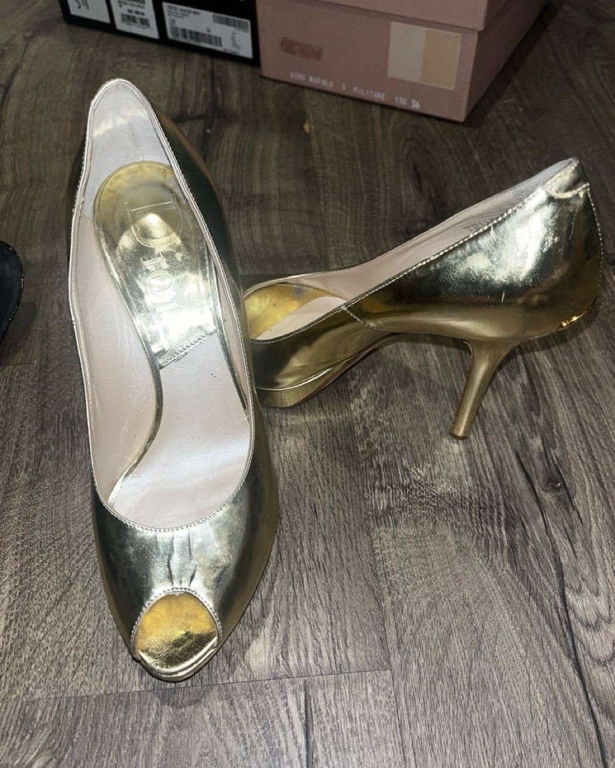 Gold Dior heels, size EU37.5 some scuffs, can withstand a night of dancing!