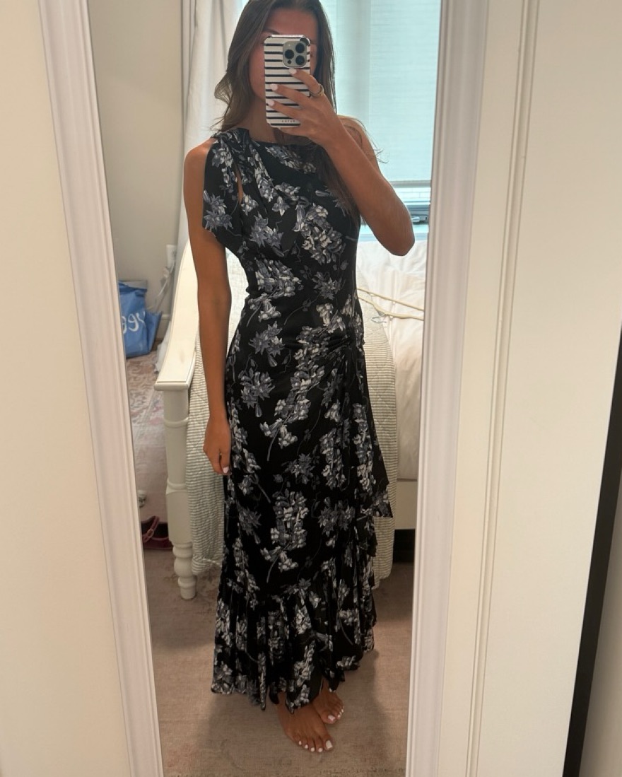 stunning maxi dress NWT from cinq a sept, features a beautiful floral print in a flowing, feminine silhouette. Perfect for a special occasion (wedding)or formal event.