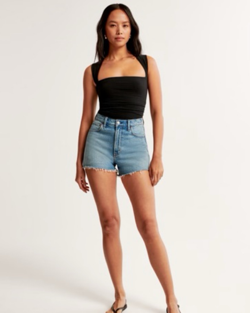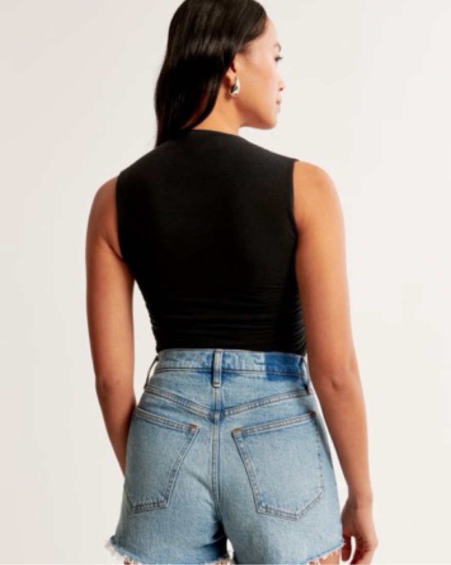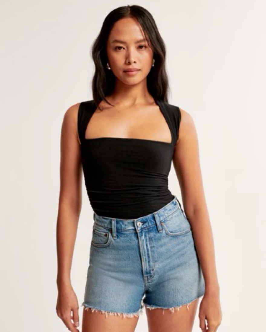 Slim-fitting top in our double-layered softAF cotton-blend seamless fabric and cropped length, featuring ruching details along the bodice and portrait neckline. Our cotton-blend seamless fabric is an ultra soft, brushed jersey fabric, that gives you a casual seamless look!