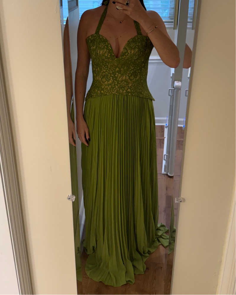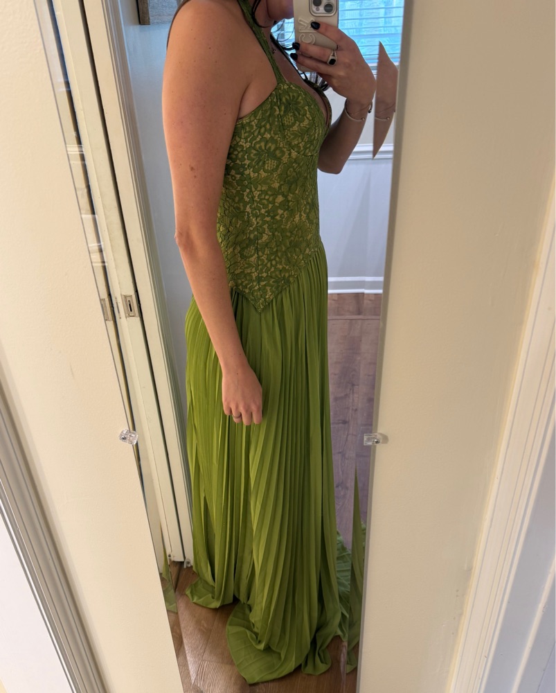 This is a gorgeous green dress! I’m 5’9” and this was a perfect length for a wedding guest!