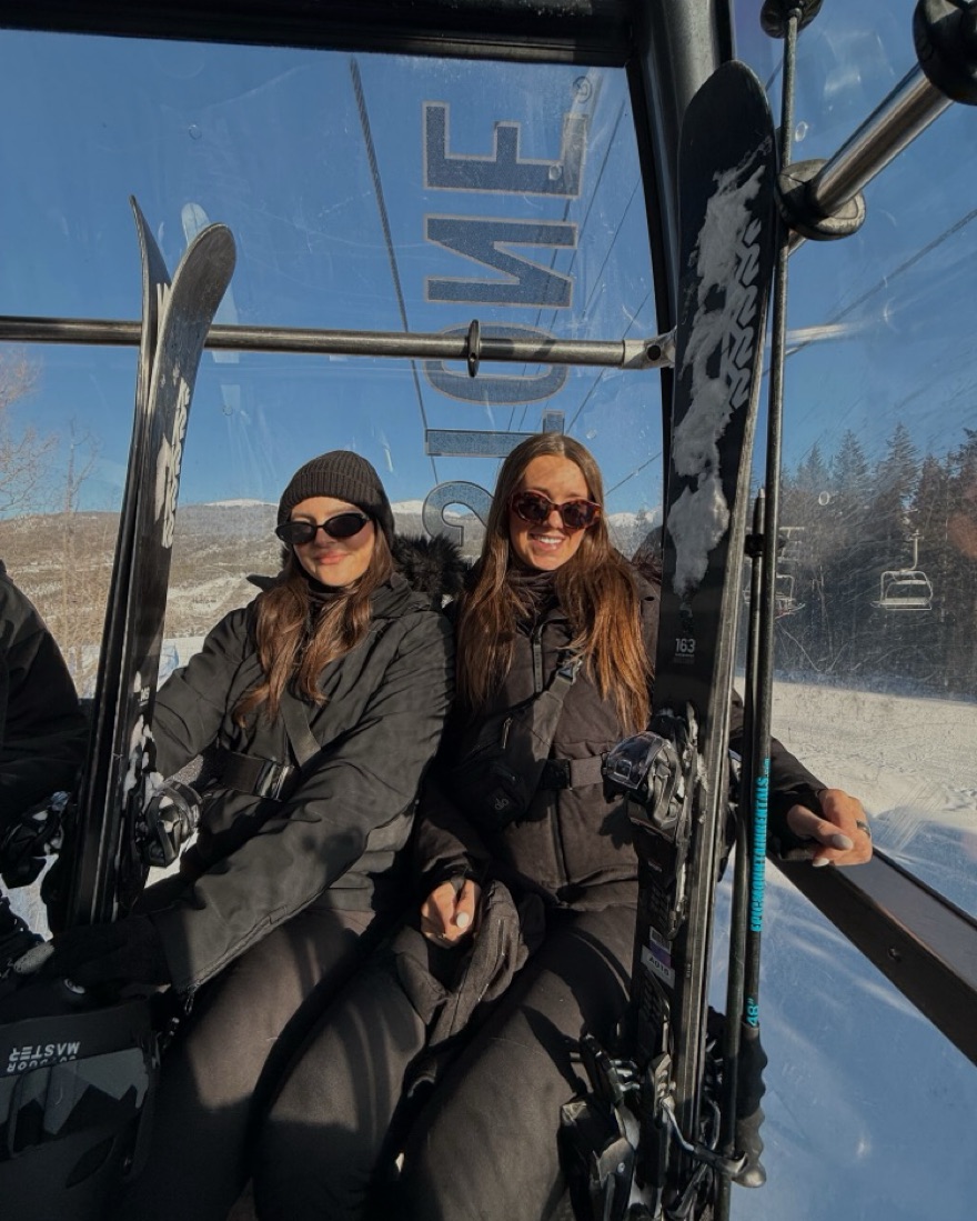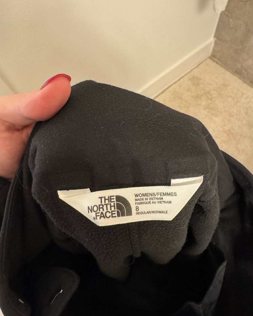 Mountain Warehouse jacket in size 6 (I’m a size 4 for reference) and North Face Snoga pants in size 8 (these run small!!). Both would work for size 4/6 and have room for thermals. Both are also waterproof and great from winter skiing.