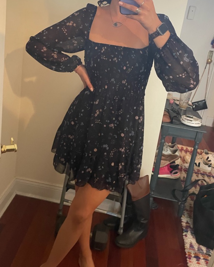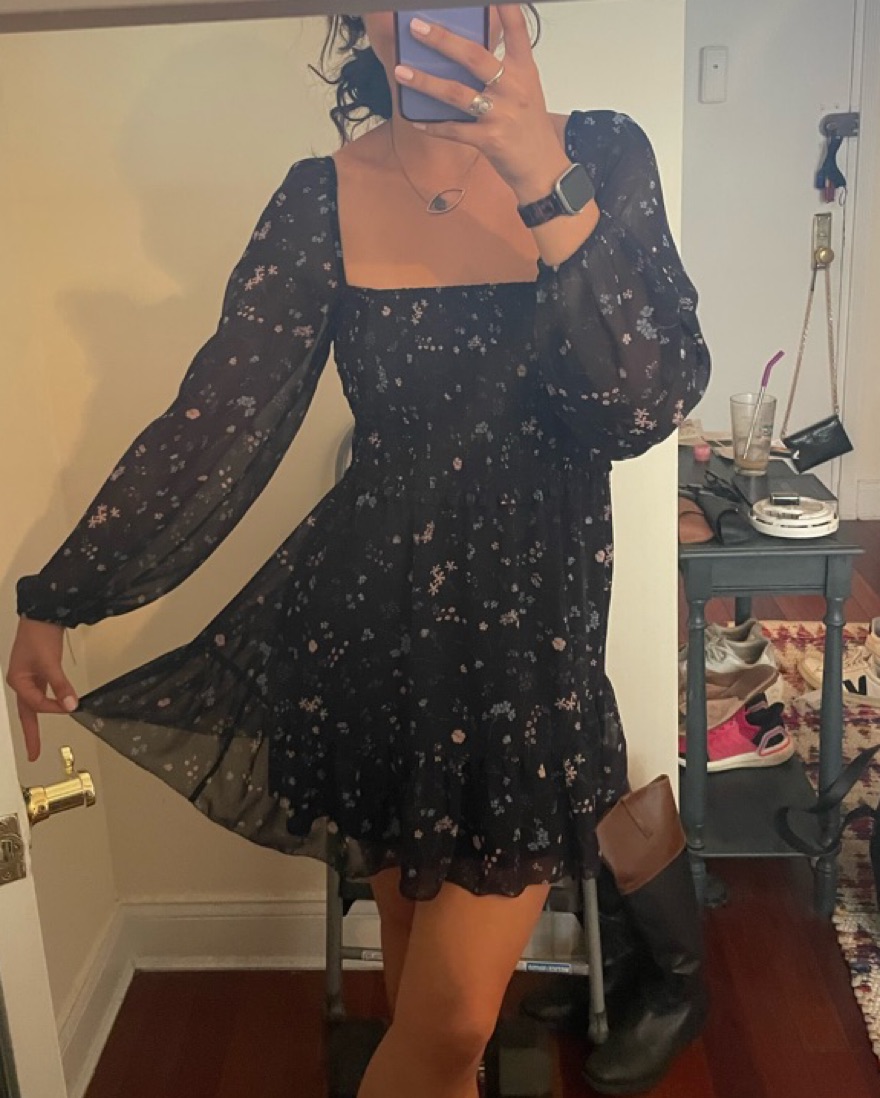 Aritzia Wilfred Tempest Dress, size medium in a navy blue floral pattern