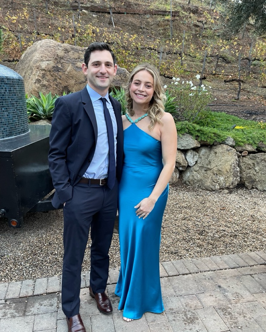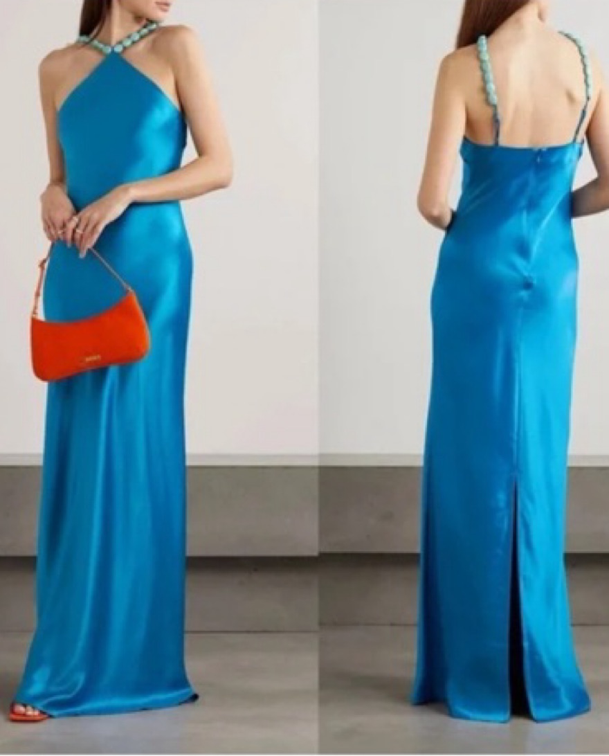 Staud silk blue long gown with turquoise beaded neckline. Lightweight and beautiful. The dress is crafted in satin and has a hidden back zipper. Only worn one time!