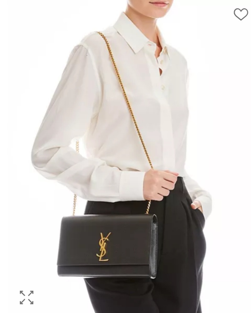 Black Grain leather with gold hardware Chain length: 18.8" Strap can be worn single or doubled Dimensions: 9.4"W x 5.7"D x 2.1"H