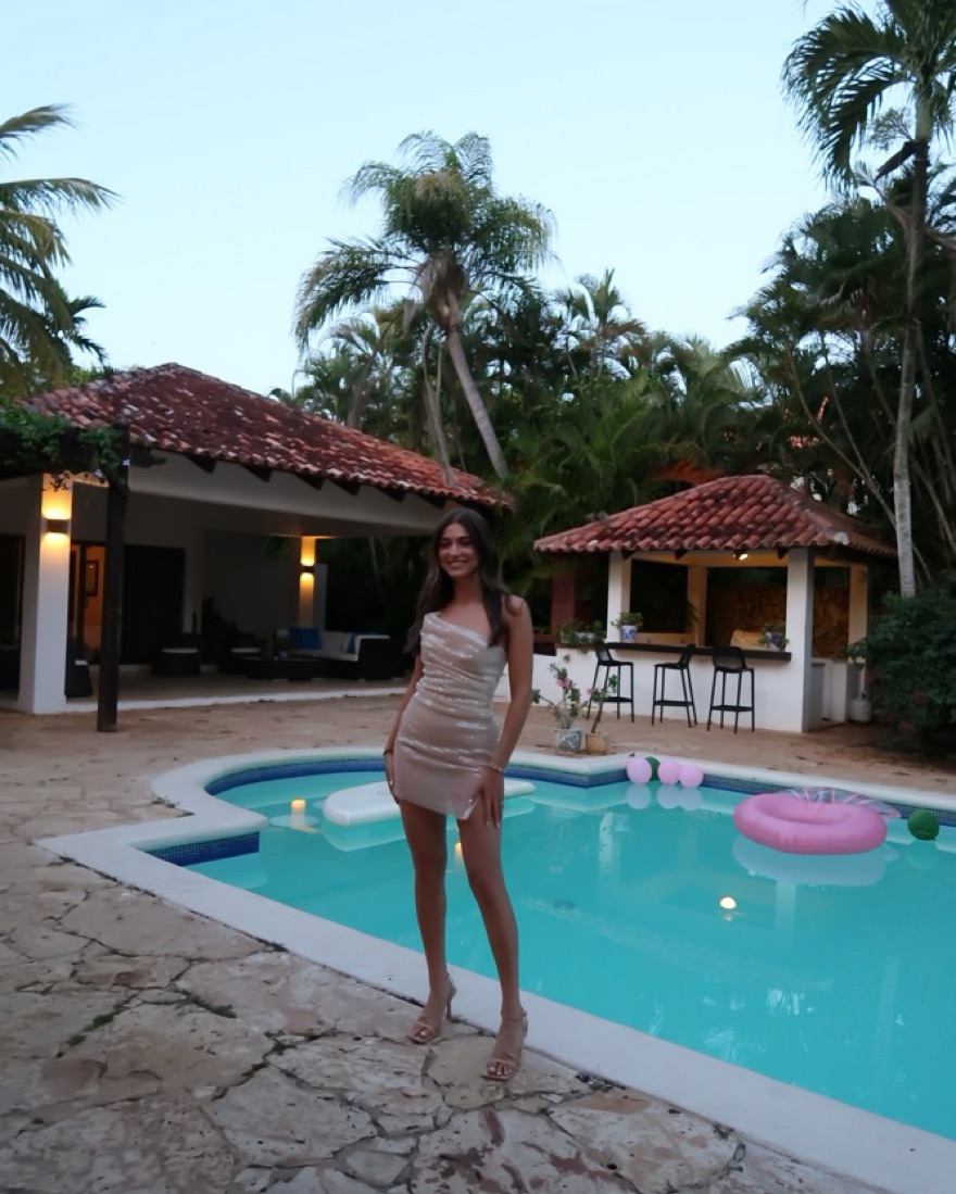 Worn once! Sheer, sequin mini dress in color sand. Must wear slip or Skims under!