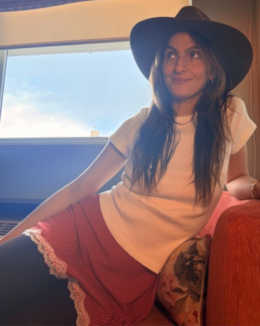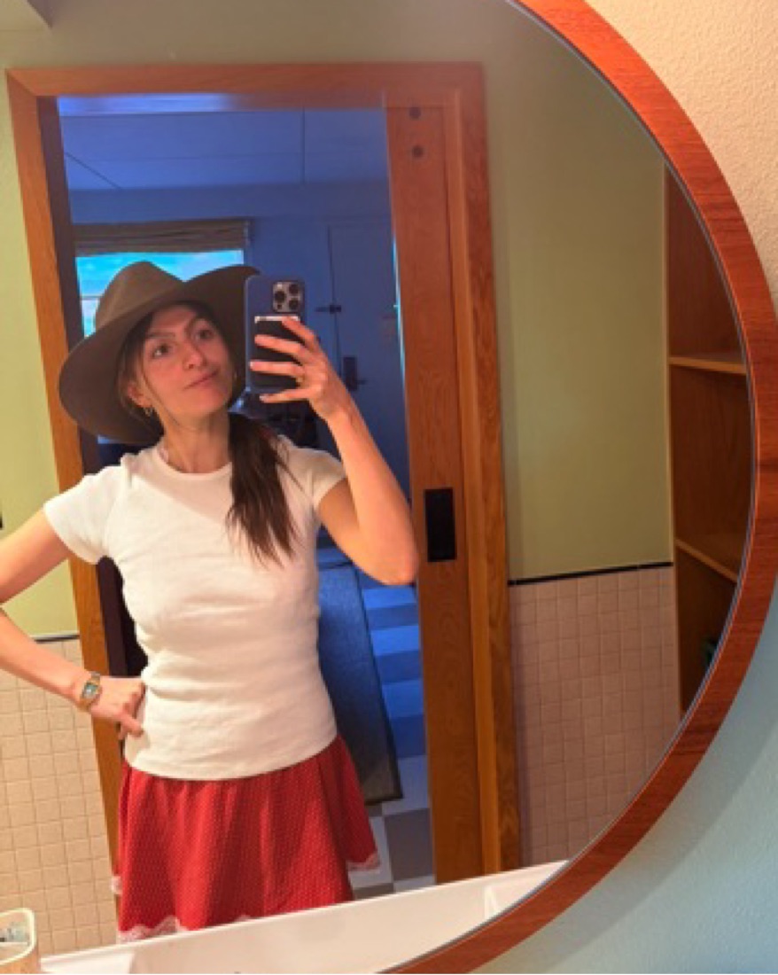 Red and white polka dot print