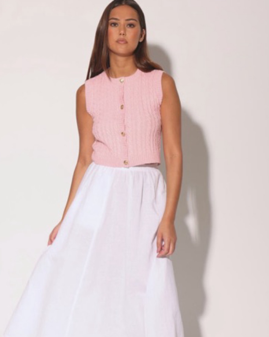 • 72% viscose, 28% polyester. Skirt: 15" length (size Small)