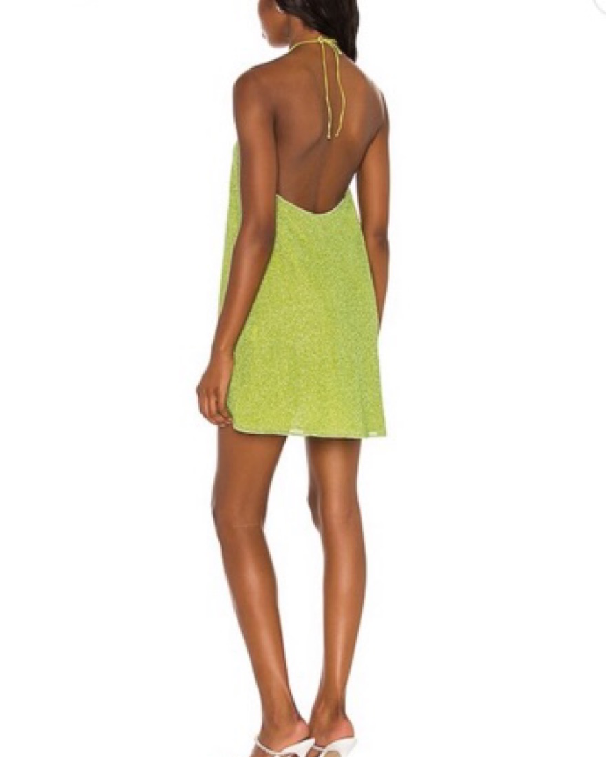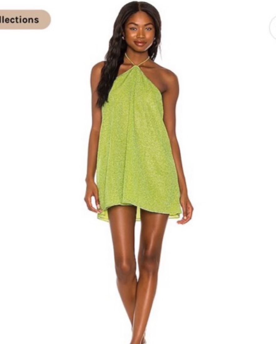 Sparkly, shimmery dress made from Oseree’s signature lumiere lurex fabric. Bright lime color makes it perfect for vacation, a formal or a bachelorette party. Worn once for a colorful sparkles/disco night theme at a bachelorette party. Great sequins alternative. Size is S/M and would fit size xs-m .