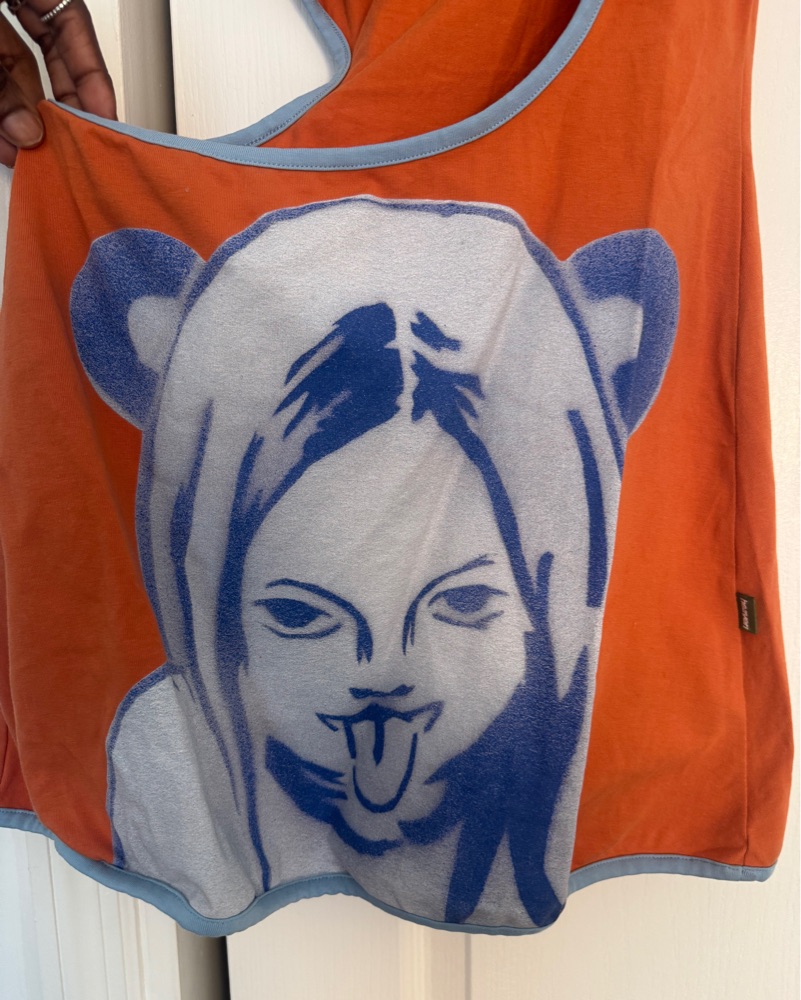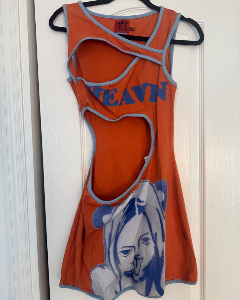 Marc Jacobs Heaven orange tank dress with cutouts and cheerleader graphic, unique and super comfortable!