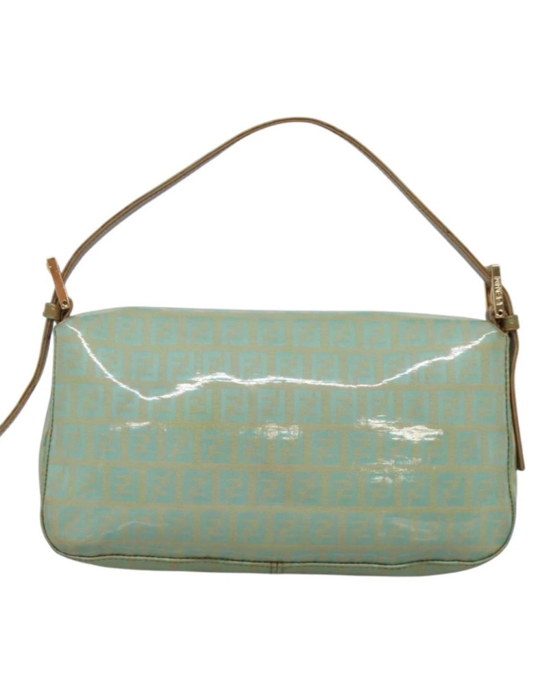 FENDI Zucchino Canvas Mamma Baguette Shoulder Bag Enamel Green Gold