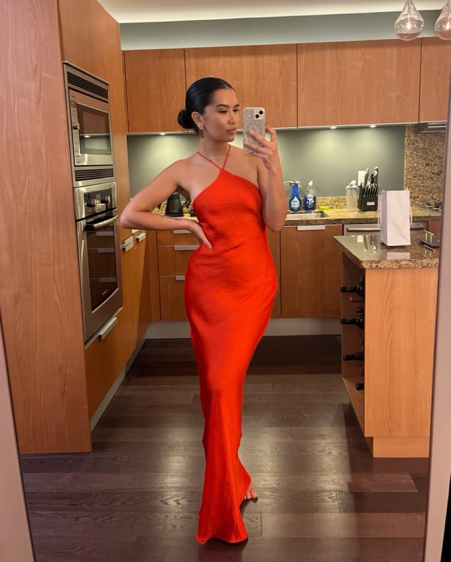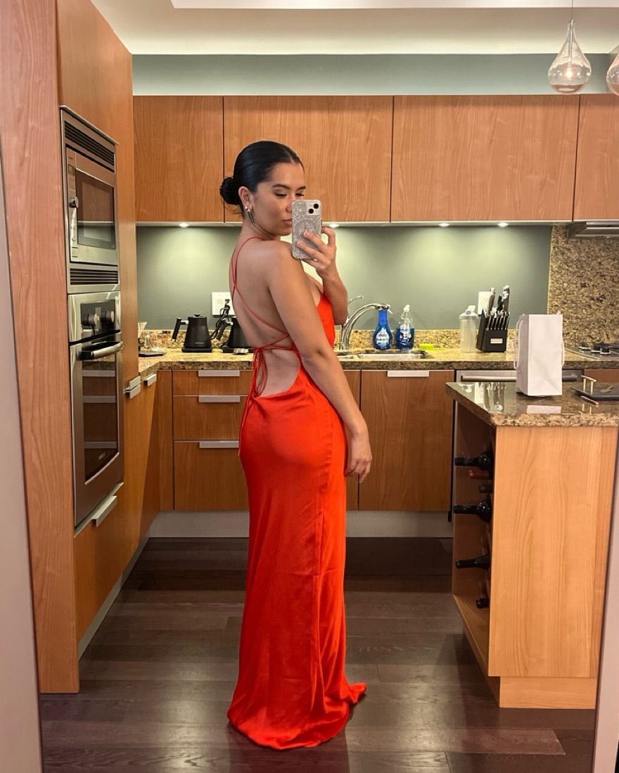 Talk about sexyyyyy…. This may or may not be a dress youll want to wear to a wedding because youll be turning heads 👀 Shes a gorgeous red satin gown that is held together by satin strings. The back is LOW so if youre looking to tease, just know. For reference, I am 5’8 - shes long!