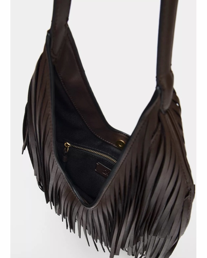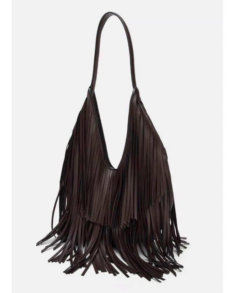 Chic & spacious bag, vegan leather fringe. Dark brown