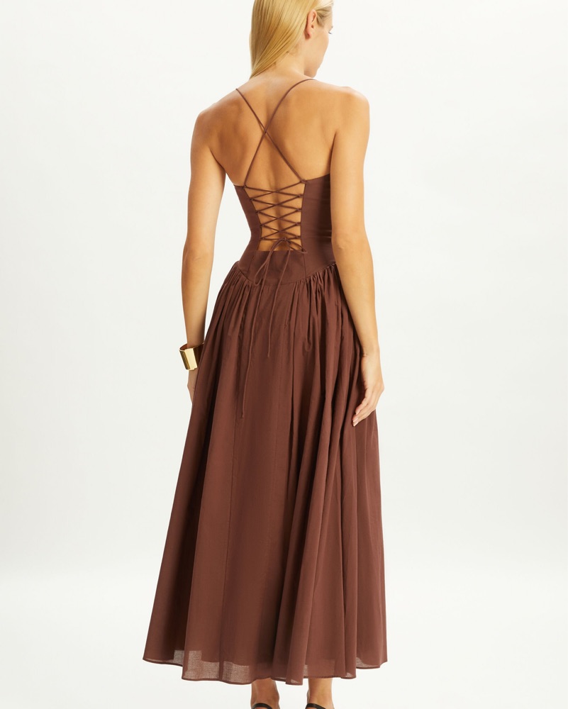The Estie Cotton Maxi Dress is a true statement dress with all the finer details. A charming sweetheart neckline, volume skirt and lace up back, this well crafted cotton maxi offers up all the elegance of easy summer evening wear.