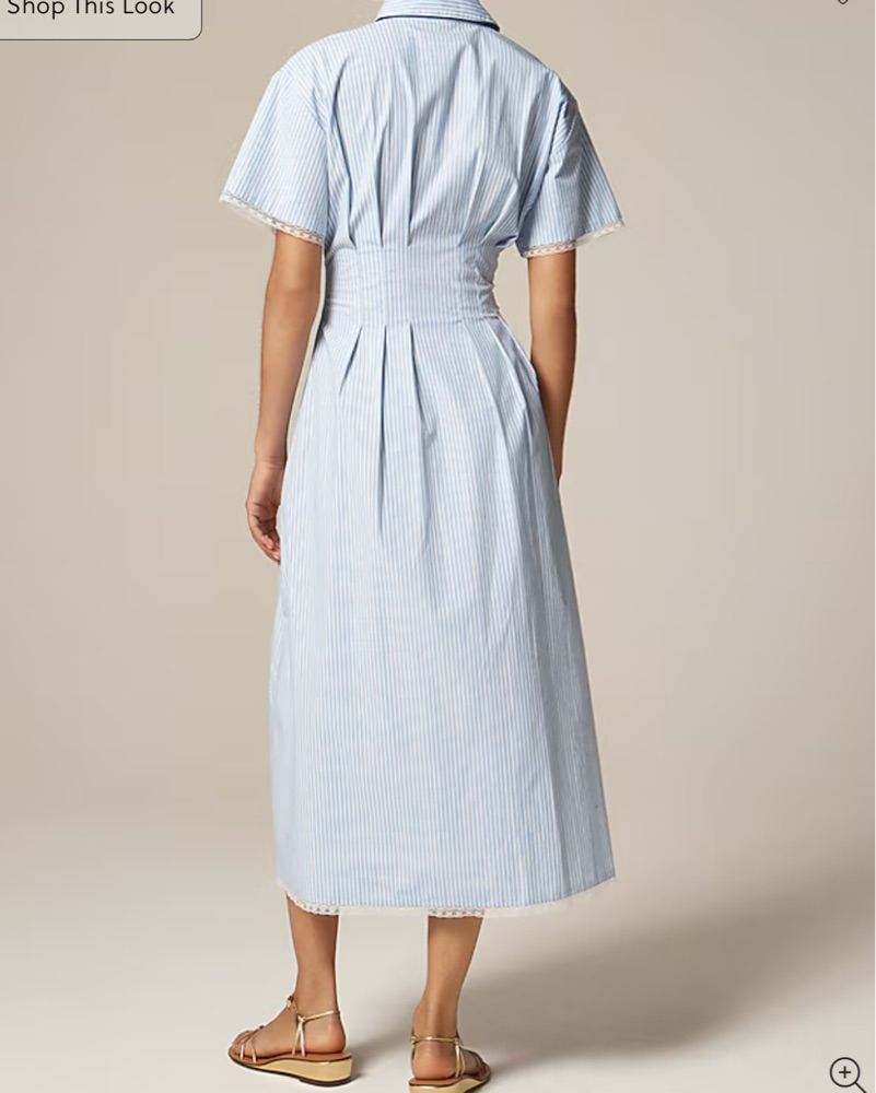 This chic and sophisticated midi dress is perfect for a variety of occasions, from a summer garden party to a formal event. The classic stripe pattern and button-down design create a timeless, elegant look.