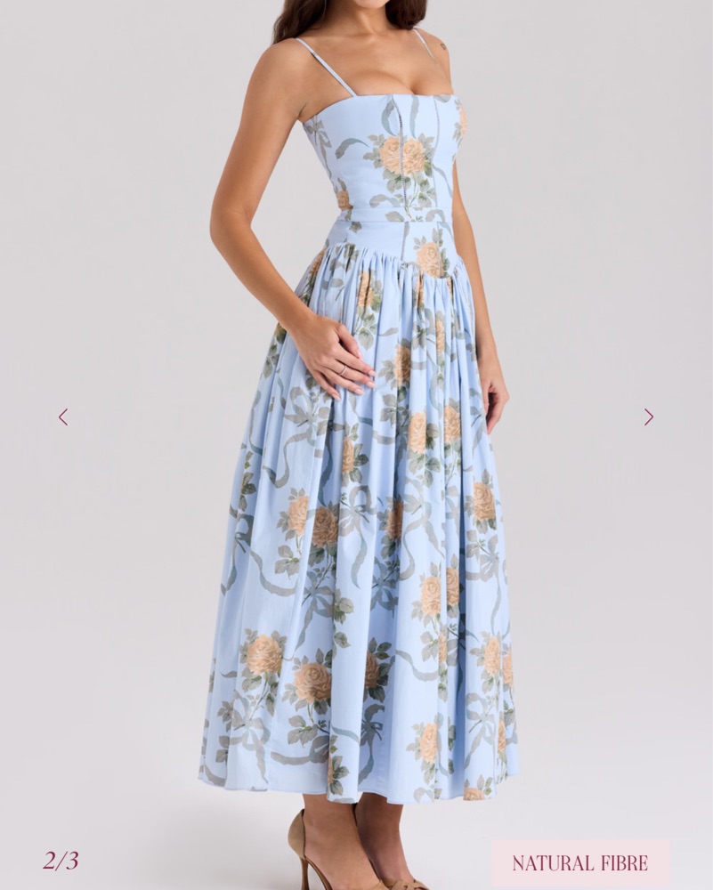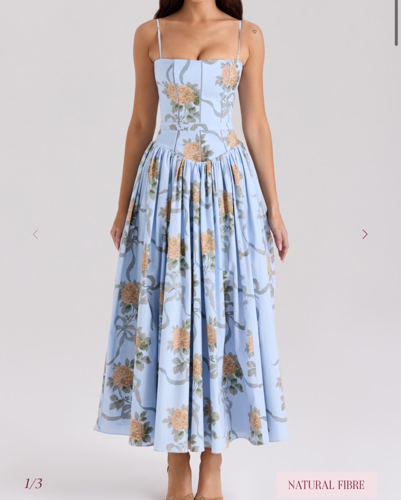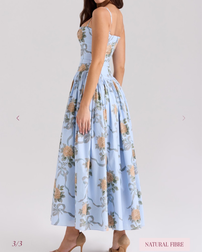 Blue Vintage Rose Print Cotton Midi Sundress. Regular cup size. Never worn before. This dress is incredibly increeeeeedibly flattering!!! Never felt more beautiful in another dress before.